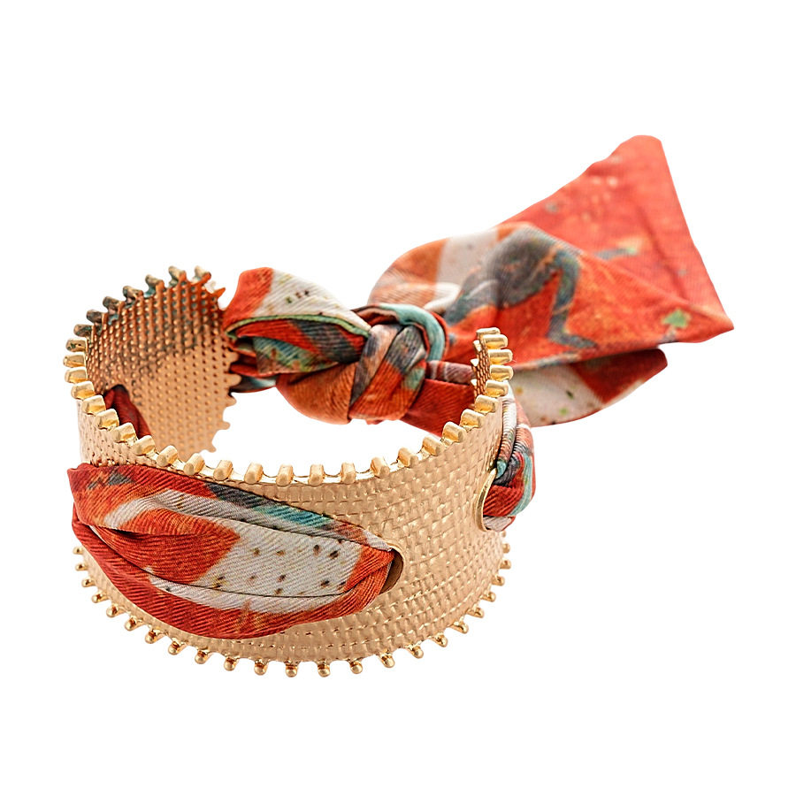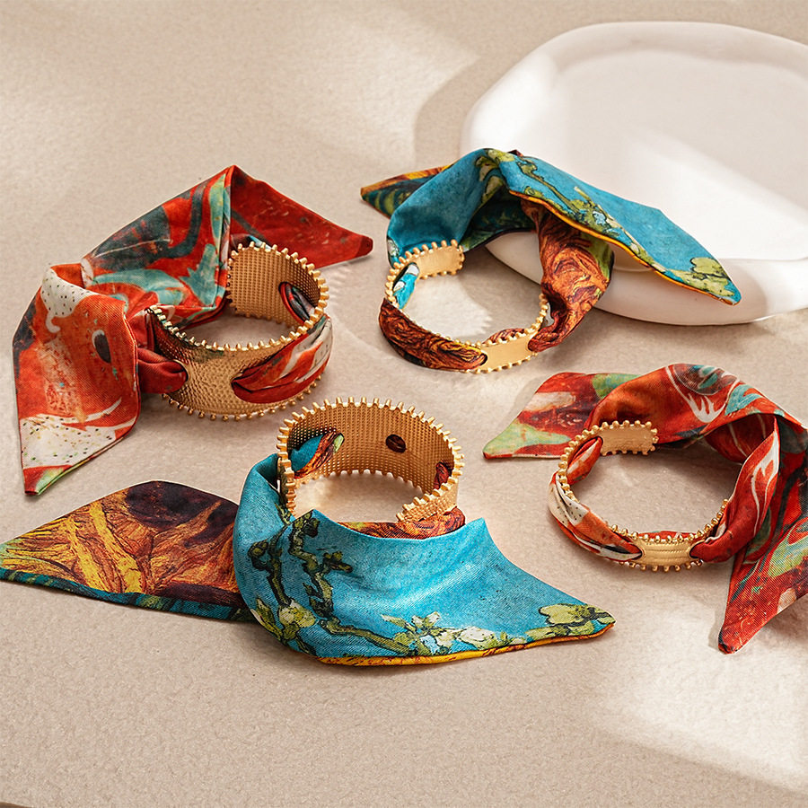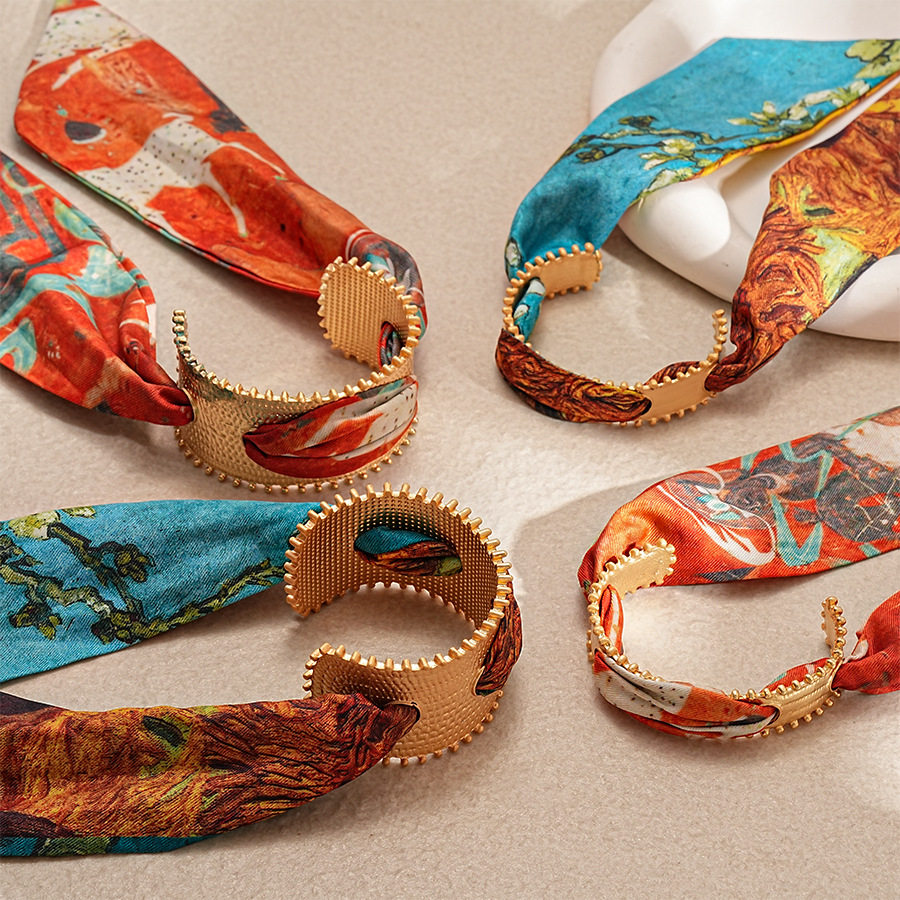 Color blocking ribbon bracelet 复古撞色飘带丝巾镂空开口手镯