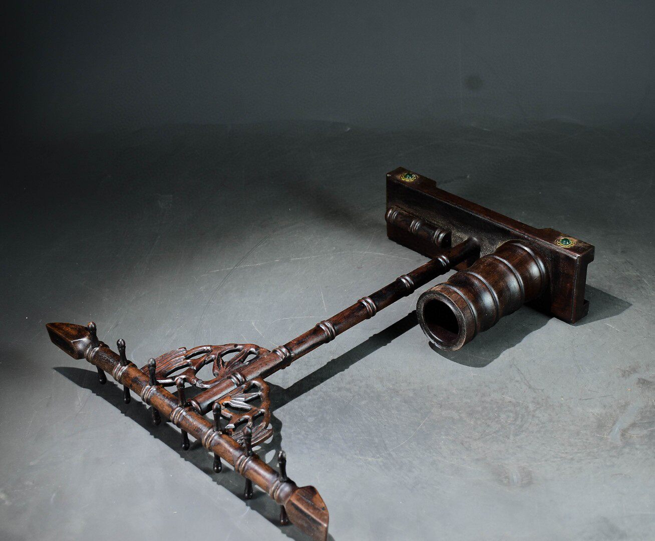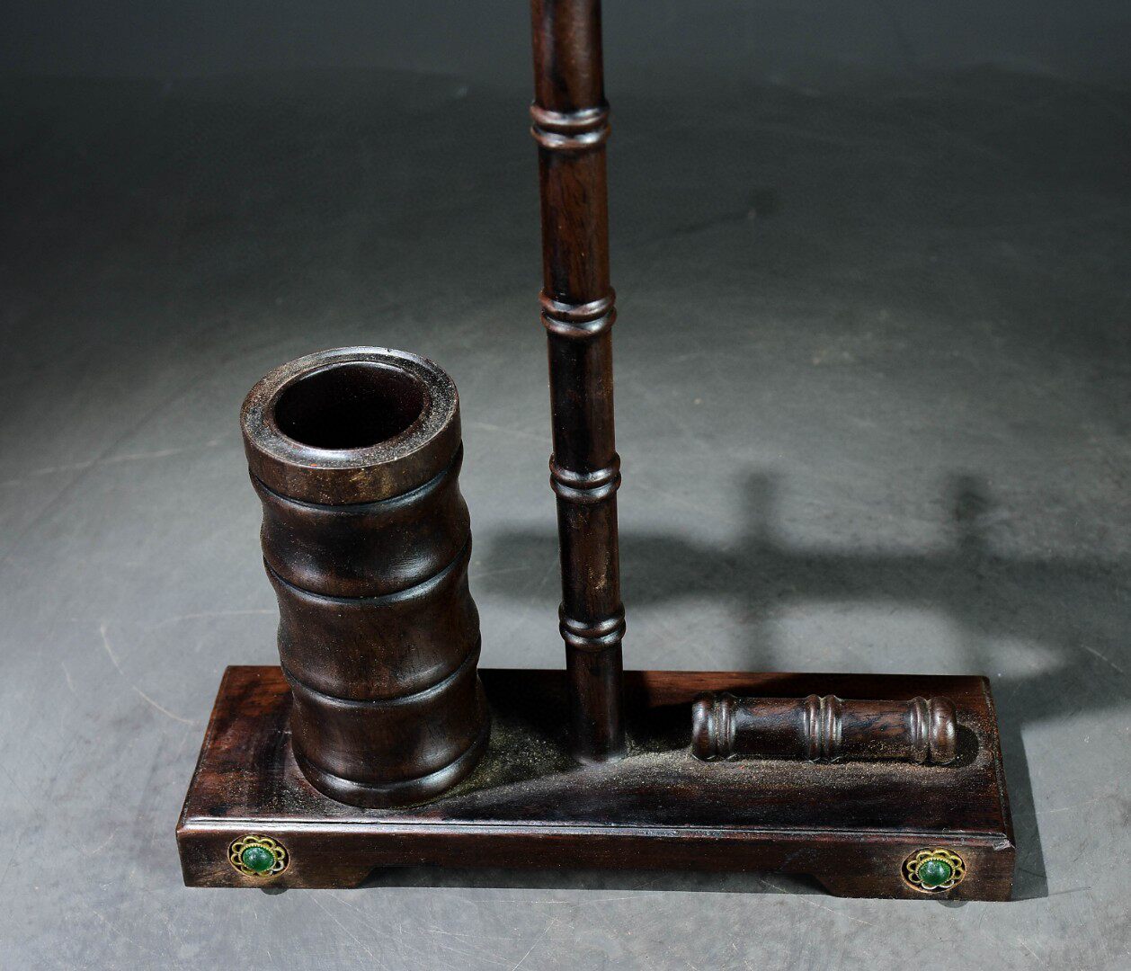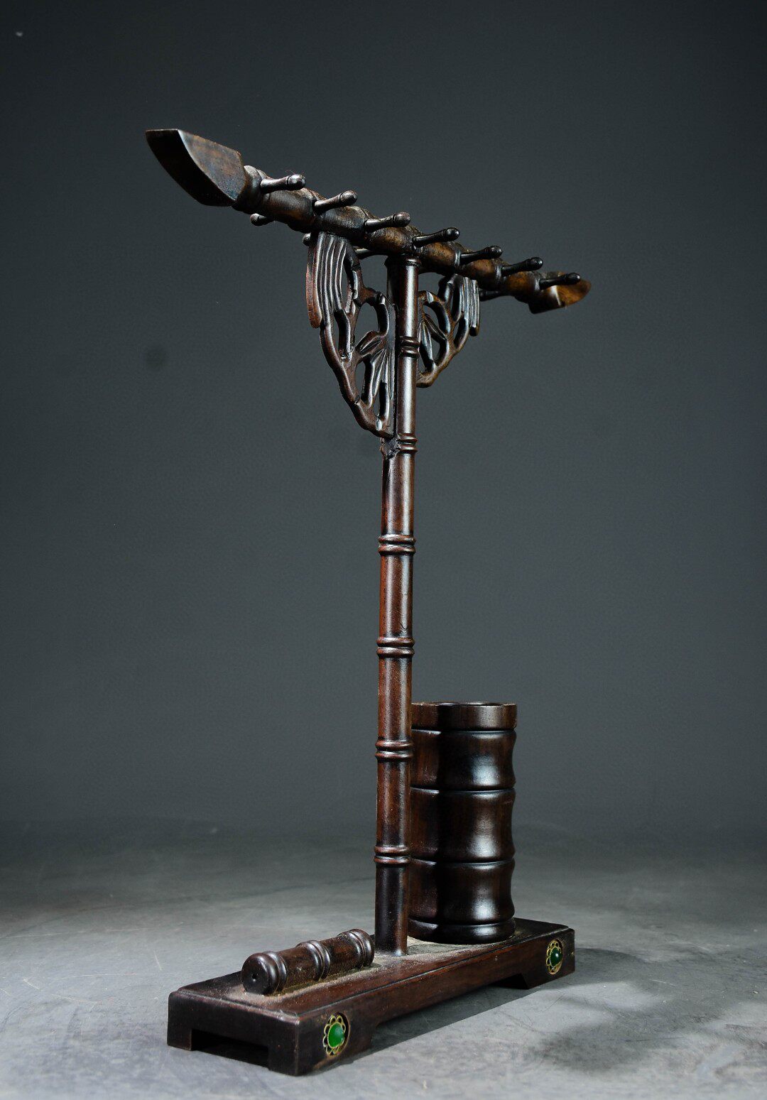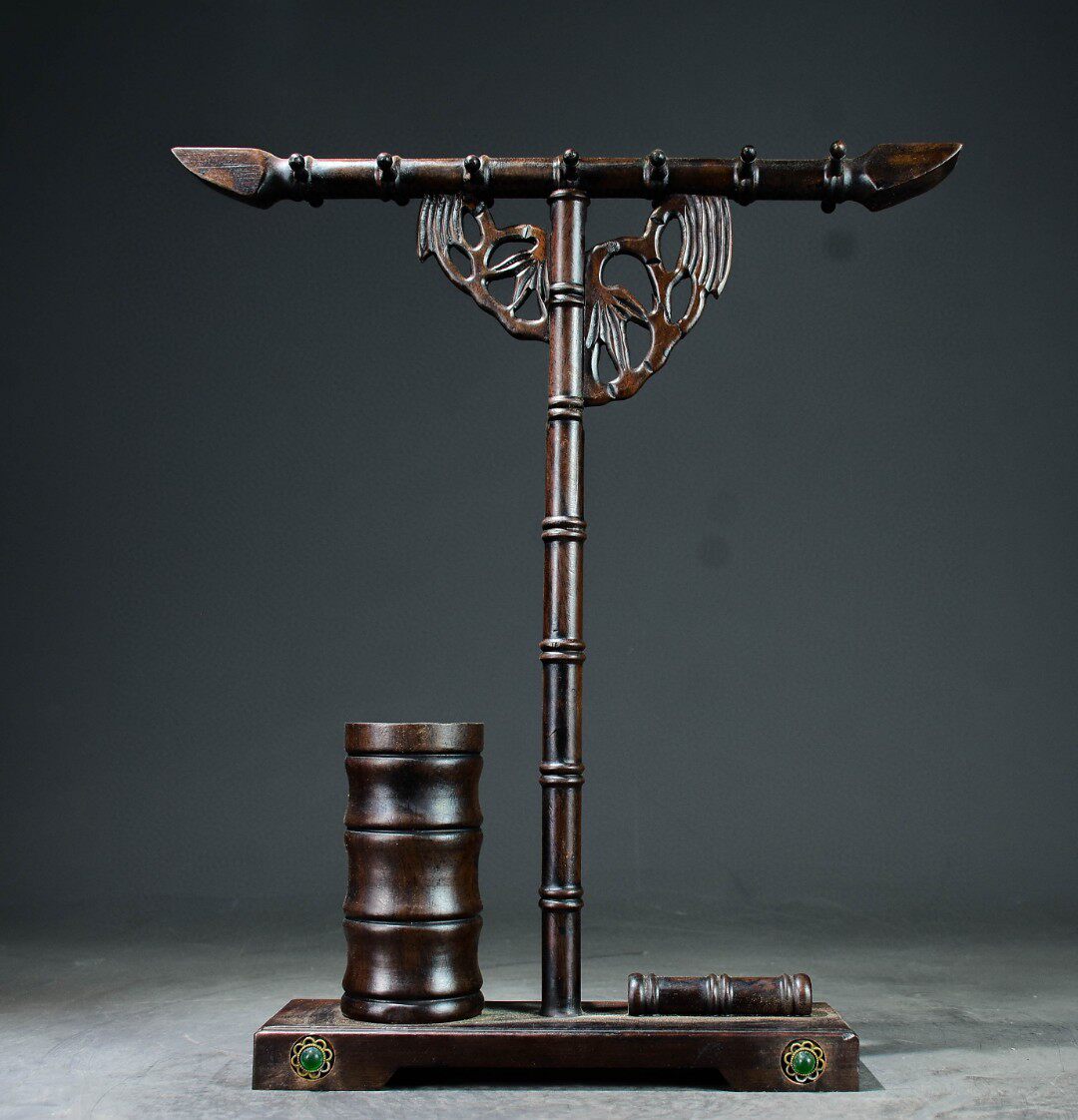 古玩杂项旧藏老紫檀木镶嵌玉竹节笔架笔搁毛笔挂书法展示架收纳