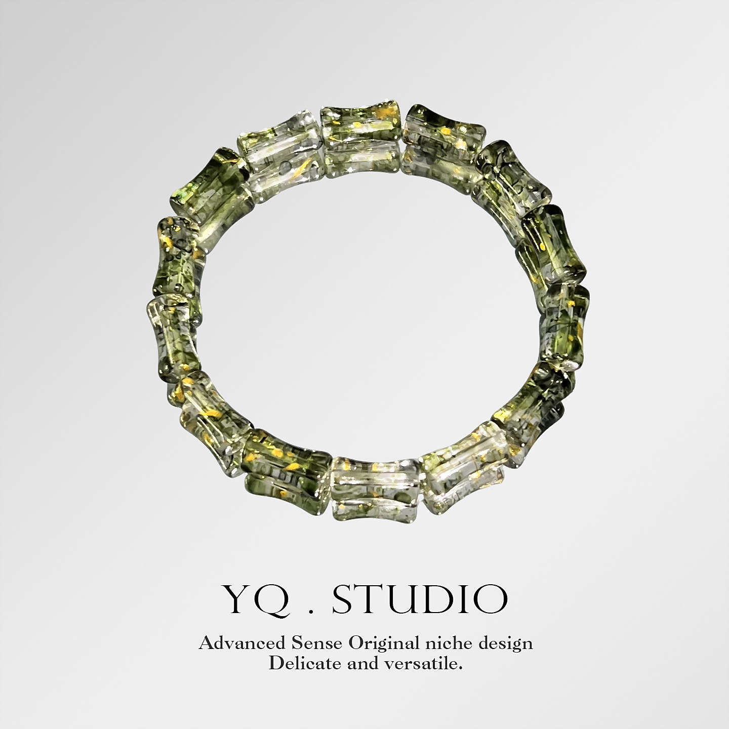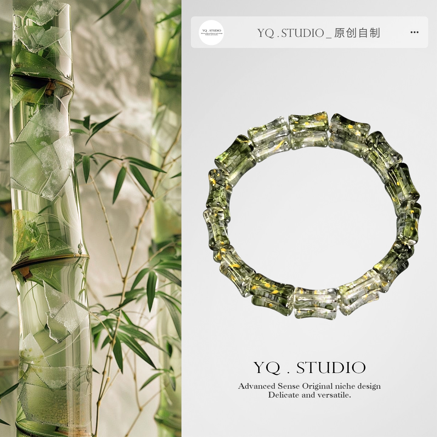 YQ.STUDIO【竹翠杖剑】新中式绿色洒金水墨手链文艺学生情侣手串