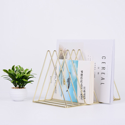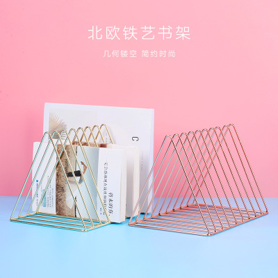 北欧铁艺书架桌面摆件建议办公桌文件夹置物架收纳架金属收纳书立