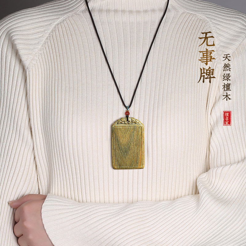 天然绿檀木平安无事牌吊坠手把件毛衣项链送女友生日礼物木牌车挂