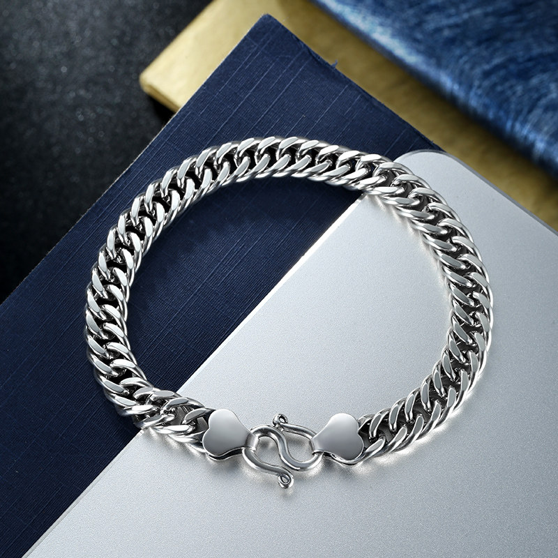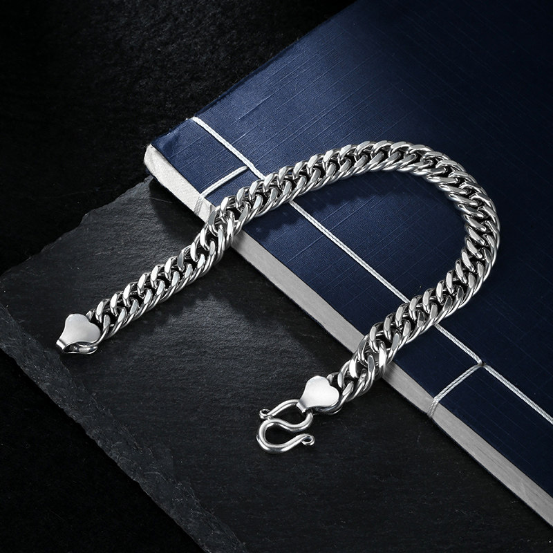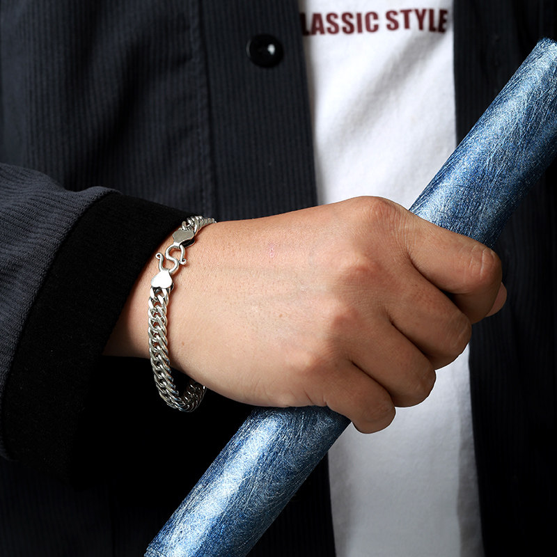 简约古巴纯银手链男女士款百搭高级感美式嘻哈男生手饰品龙年礼物