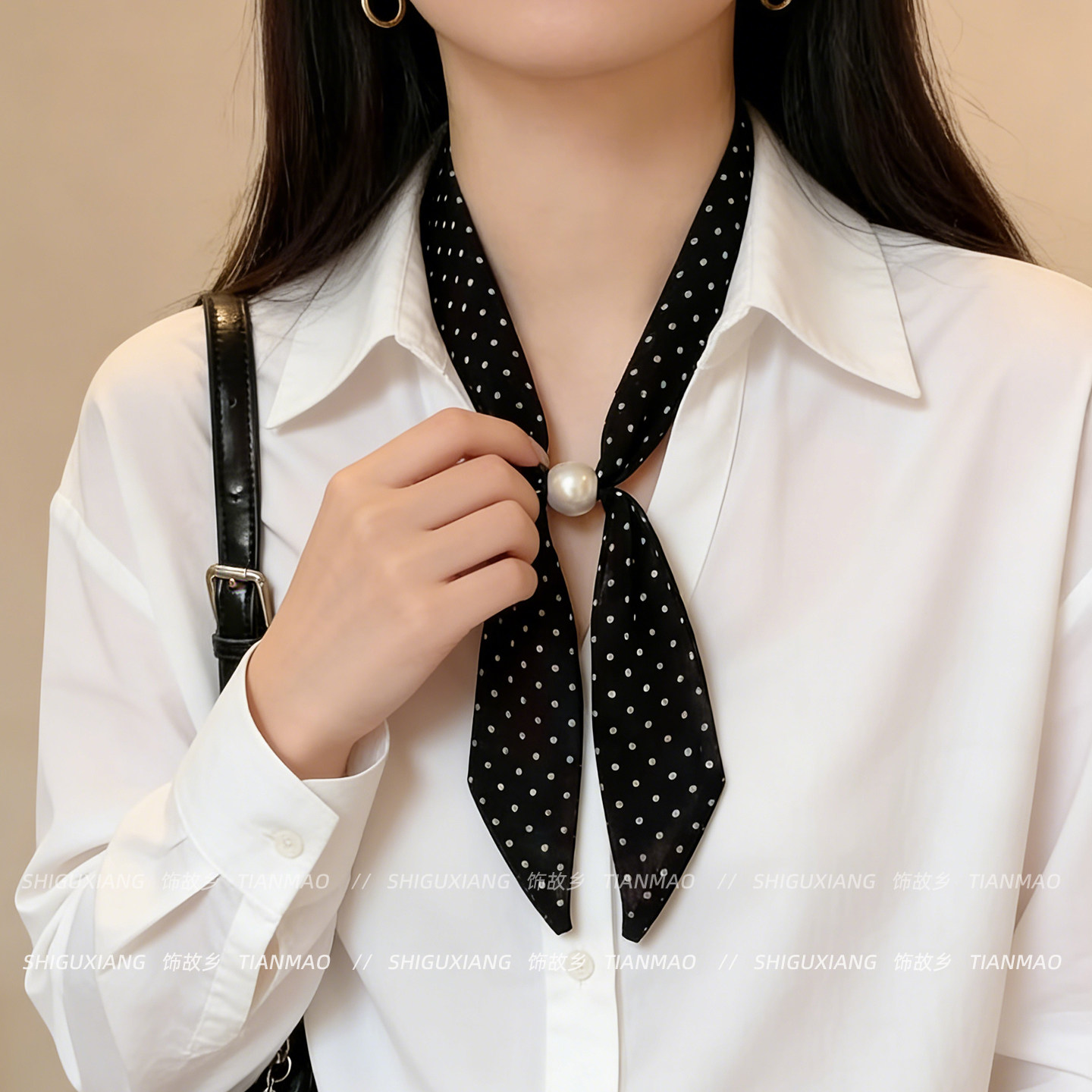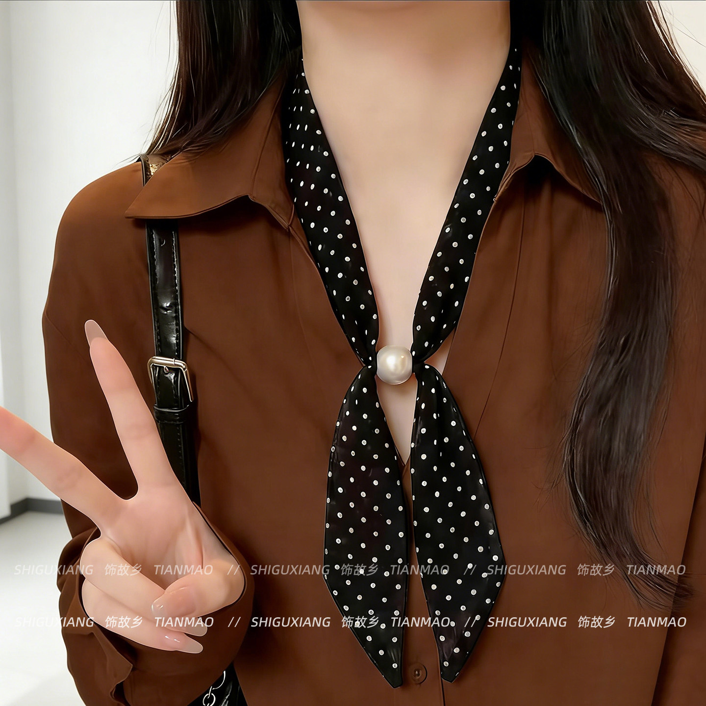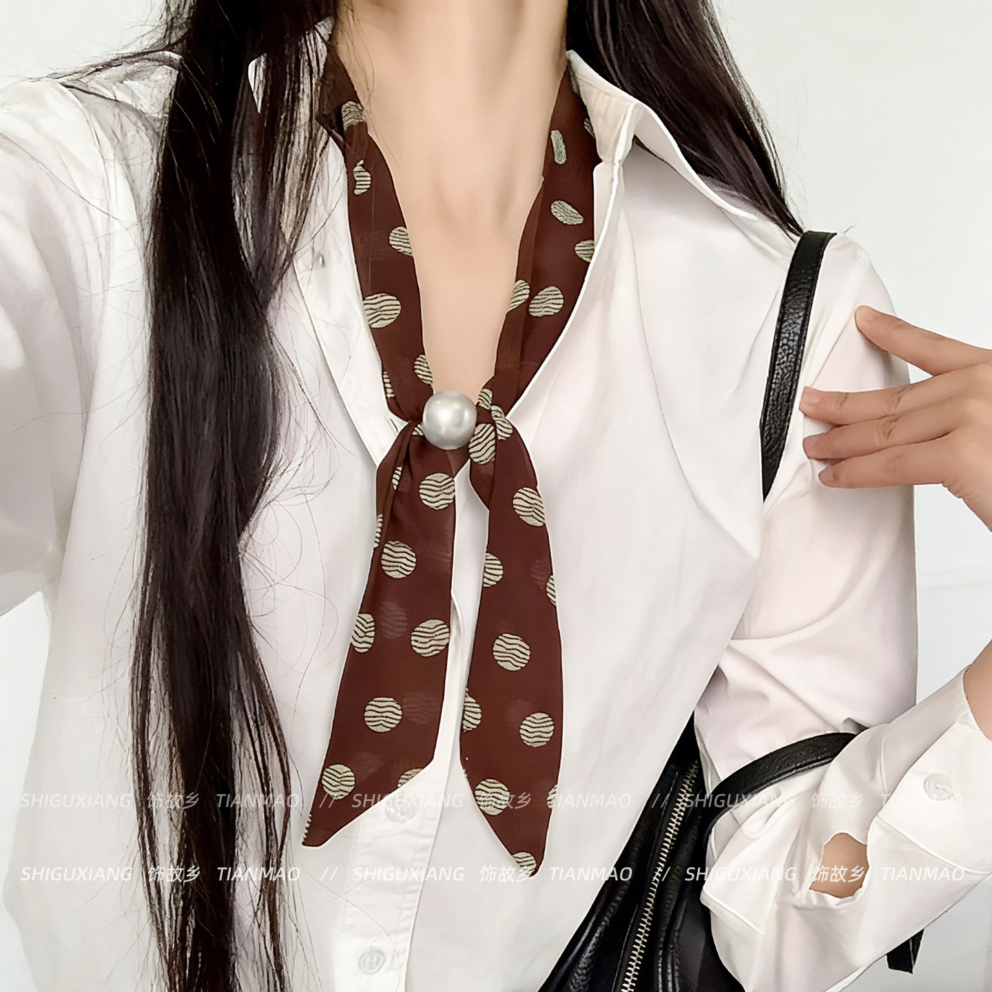 咖色波点丝巾项链女款2026新款抽拉系脖领巾搭配衬衫时髦脖子配饰