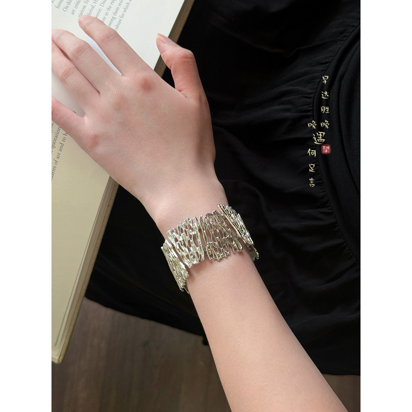 复古锆石弹力绳宽手镯女轻奢小众高级感手链夸张个性时尚ins手饰