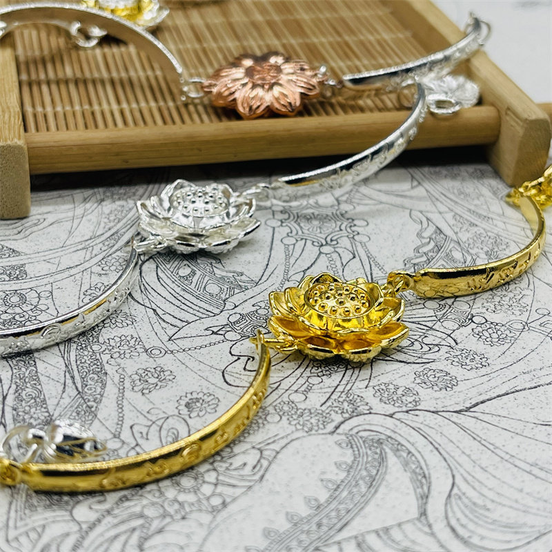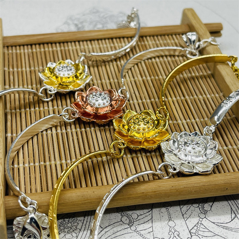 西藏特色六字真言藏银手链莲花莲蓬配饰品民族风学生女款首饰礼品