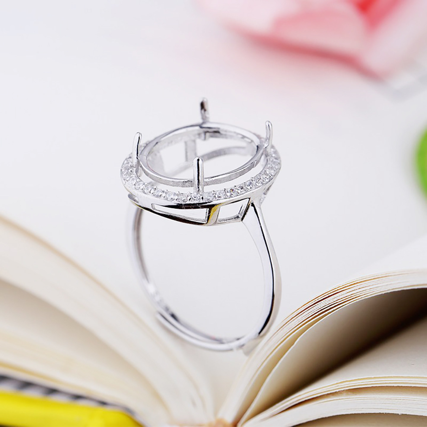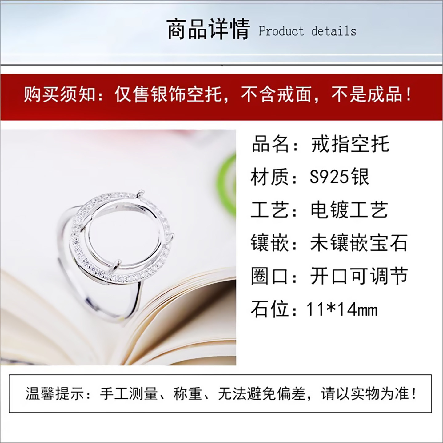 S925纯银戒指空托DIY开口银饰戒托蜜蜡戒托绿松石戒托女款11*14