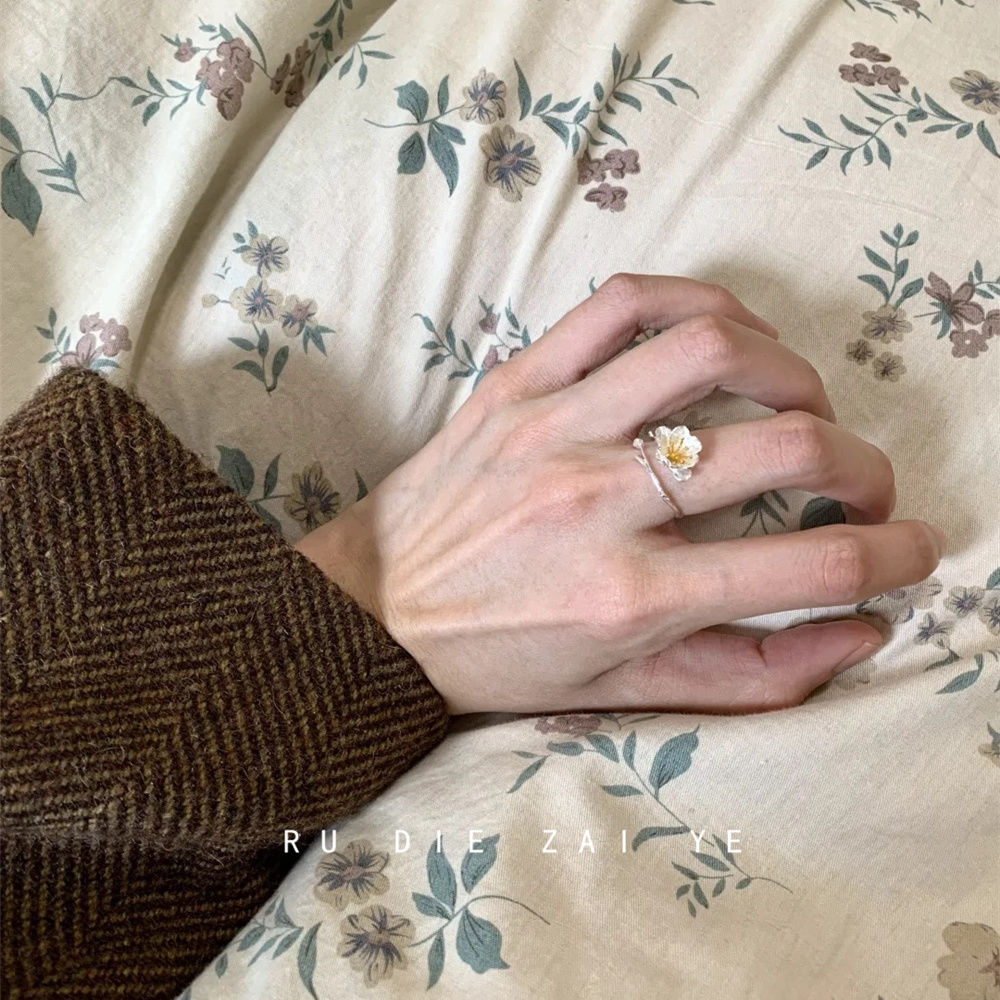 如蝶在野 海棠花开~新中式国风戒指复古清冷感小众立体花朵开口戒