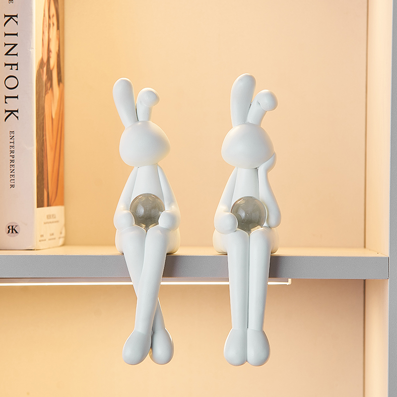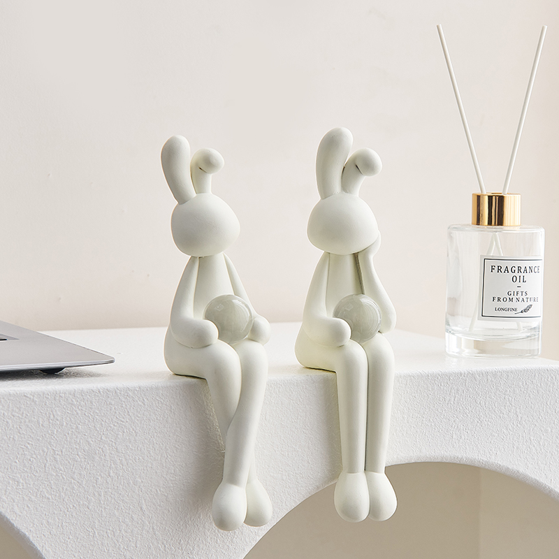 卡通坐姿坐式兔子艺术吊脚摆件家居客厅电视柜装饰品高级设计感