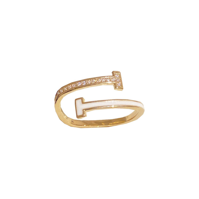 双T滴油开口戒指女镶钻轻奢冷淡风小众设计ins潮时尚百搭配饰代发