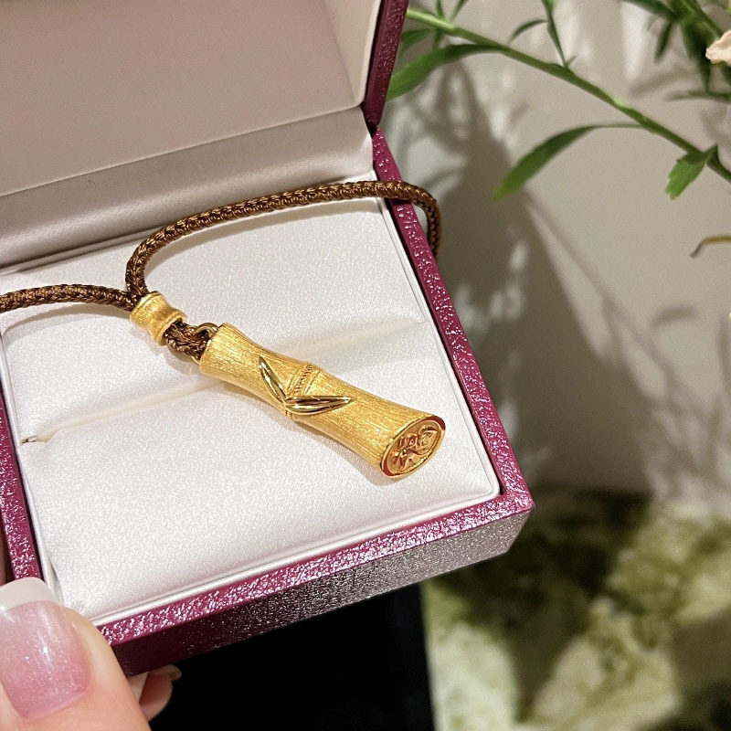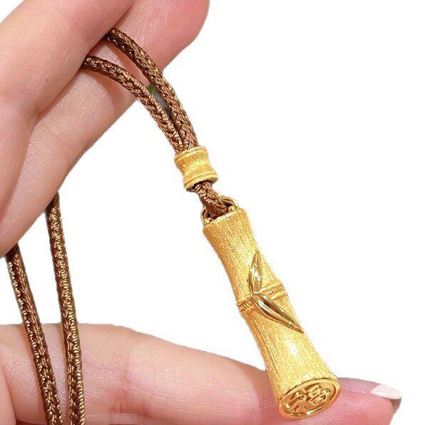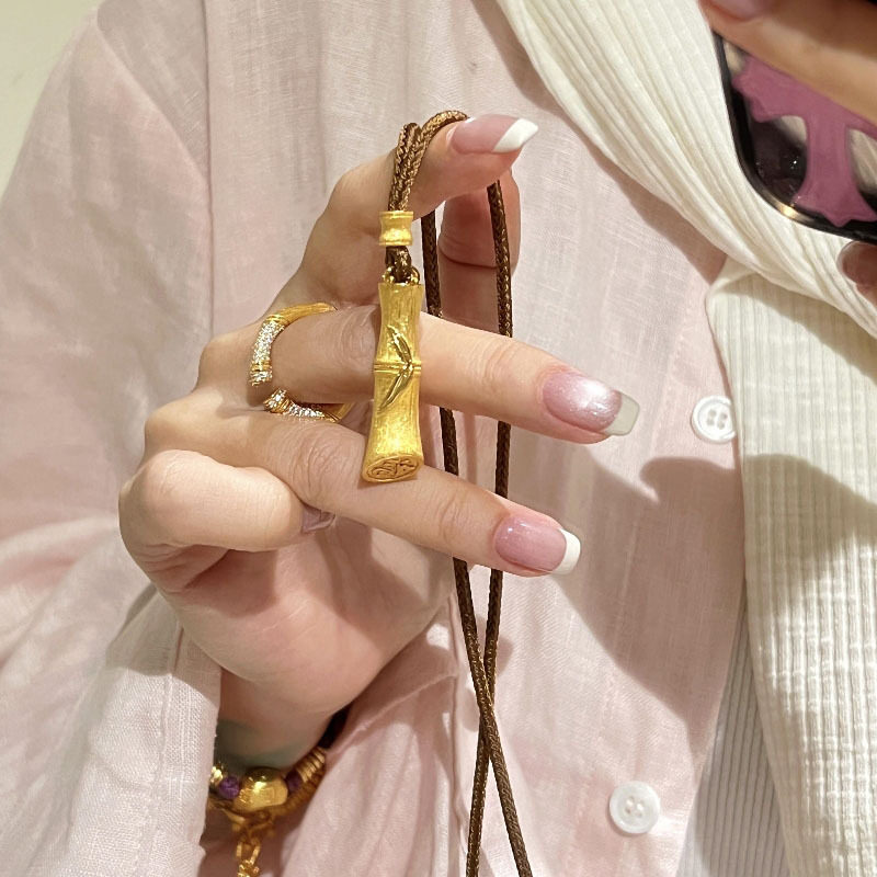 新中式复古拉丝棕绳平安竹节项链节节高升吊坠国潮百搭个性锁骨