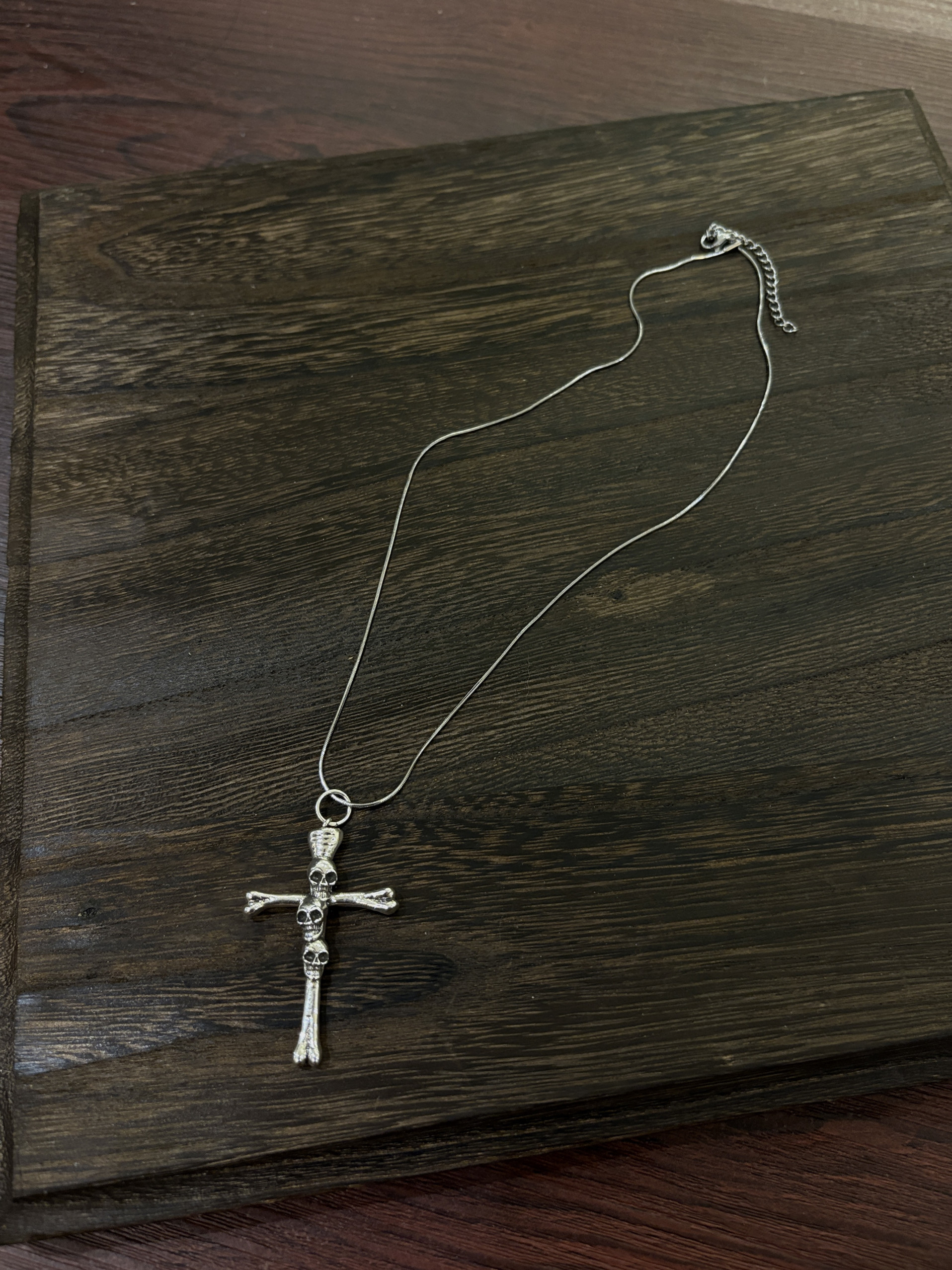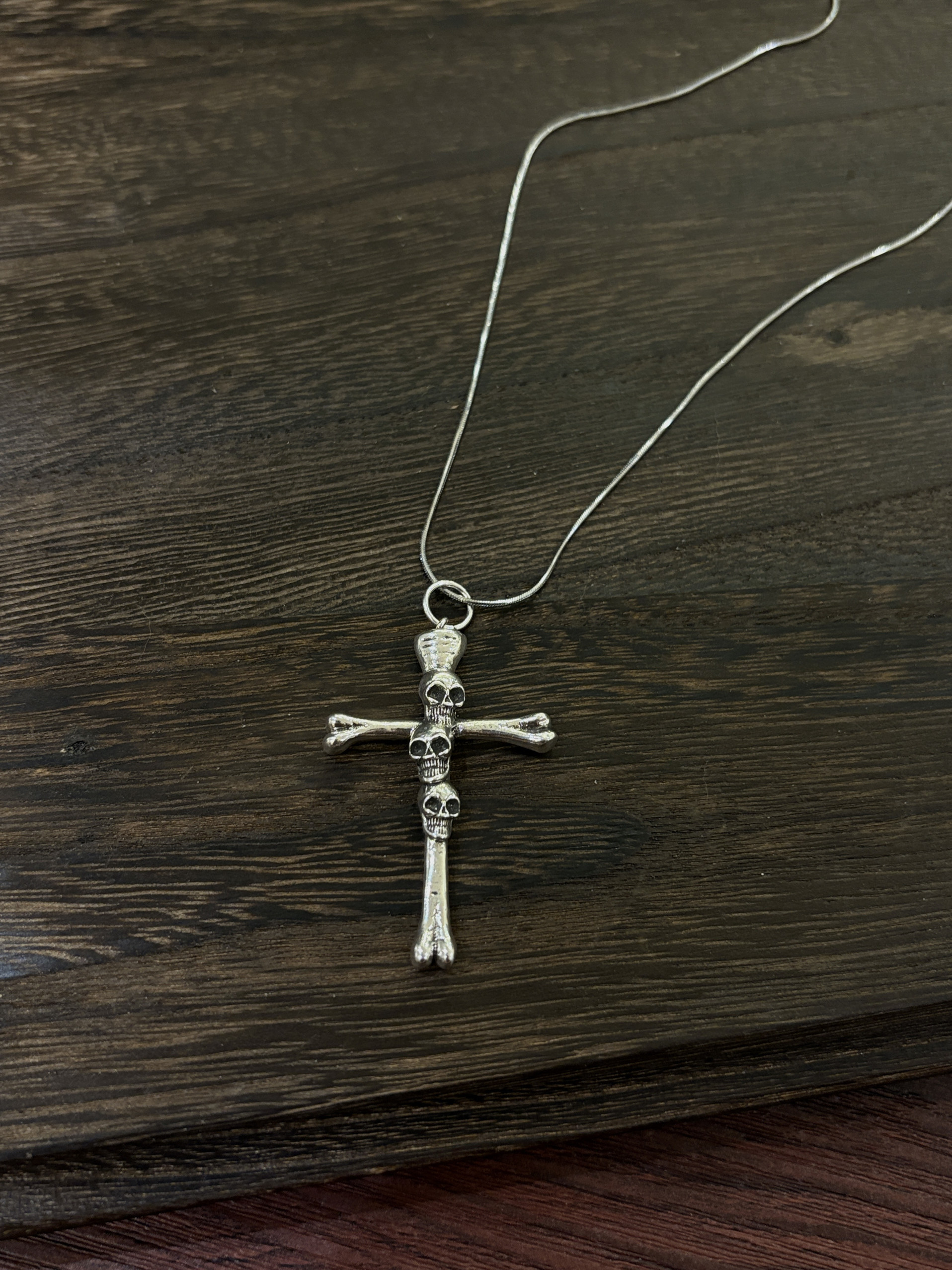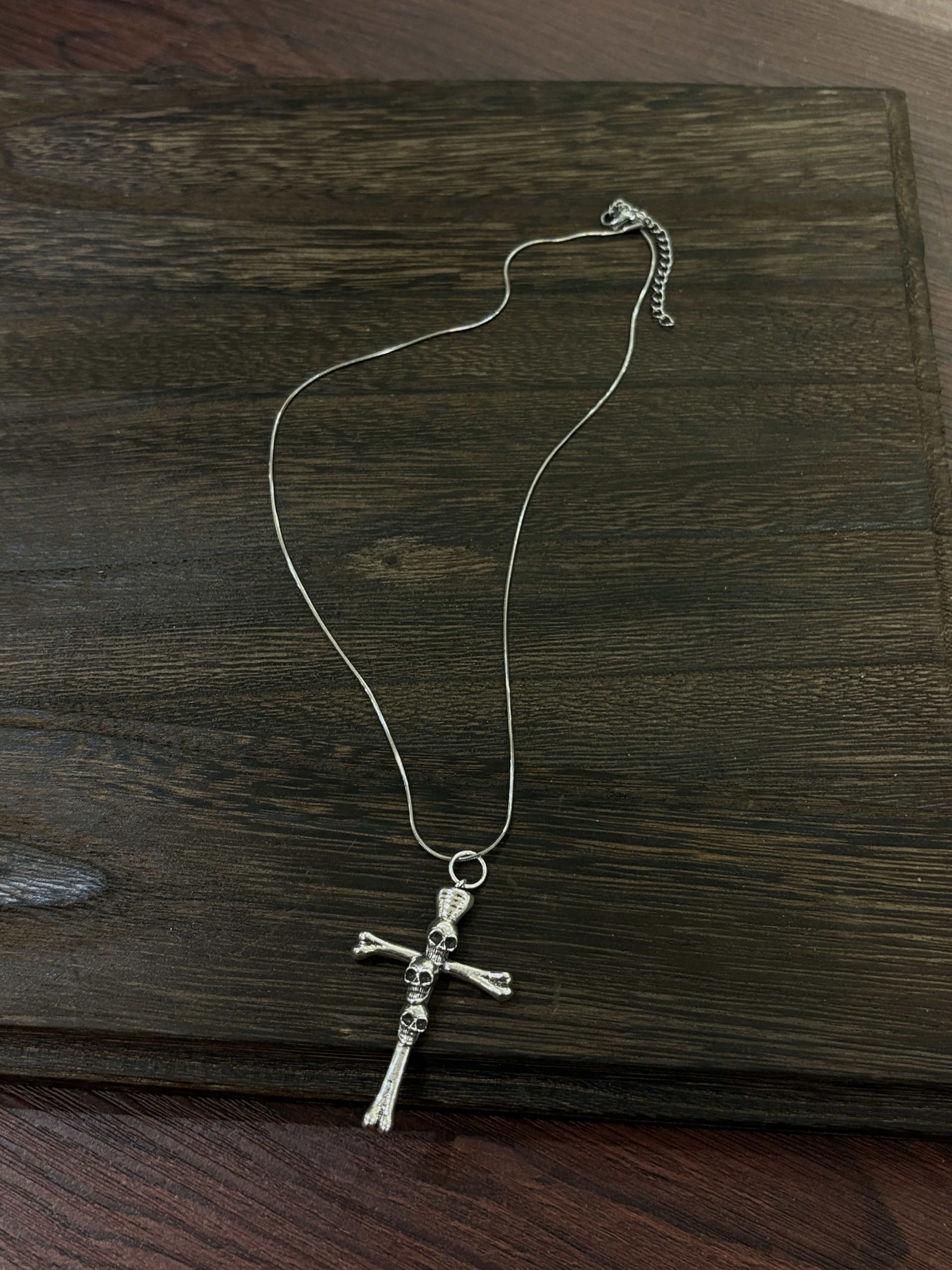 小心袖口 25SS Vintage中古十字骷髅头重金属钛钢项链朋克配饰