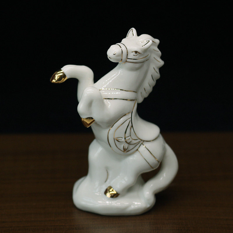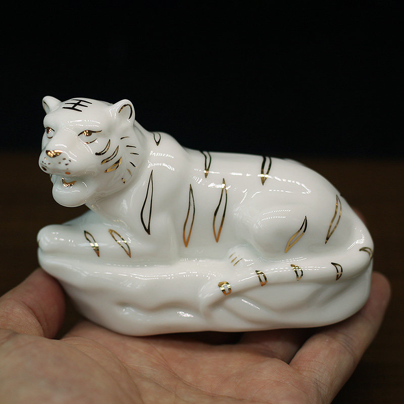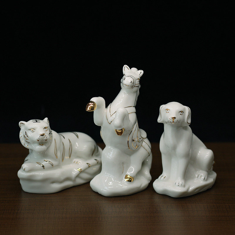 白色陶瓷十二生肖虎马狗寅午戌三合贵人局风水摆件家用装饰工艺品