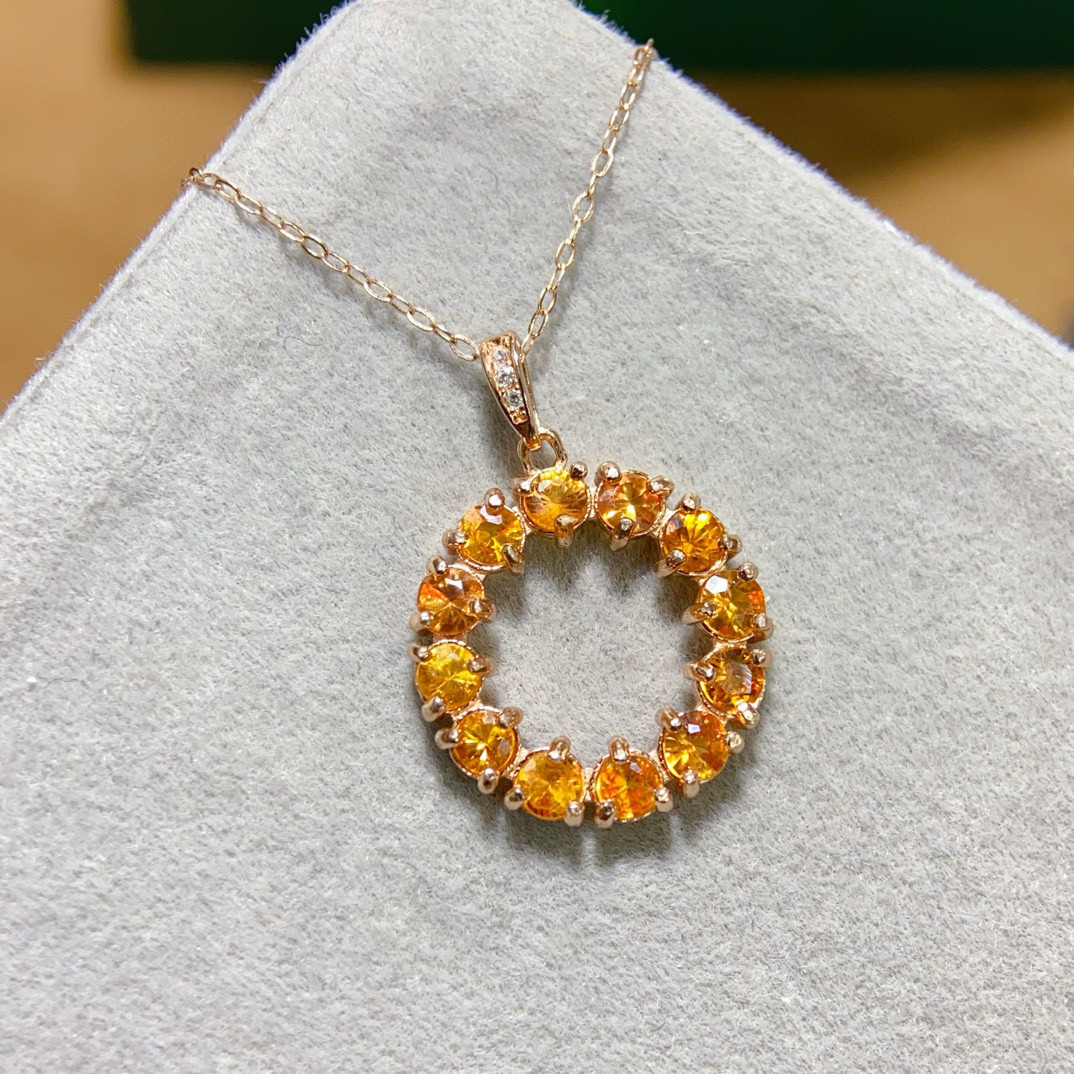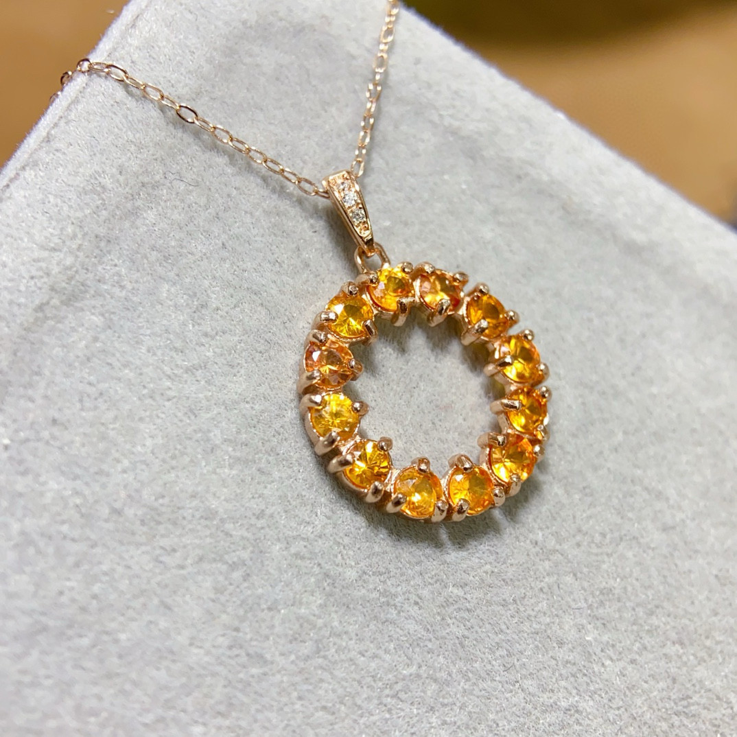 天然黄色蓝宝石新品上架圆圈花环款纯银吊坠甜甜圈吊坠项链