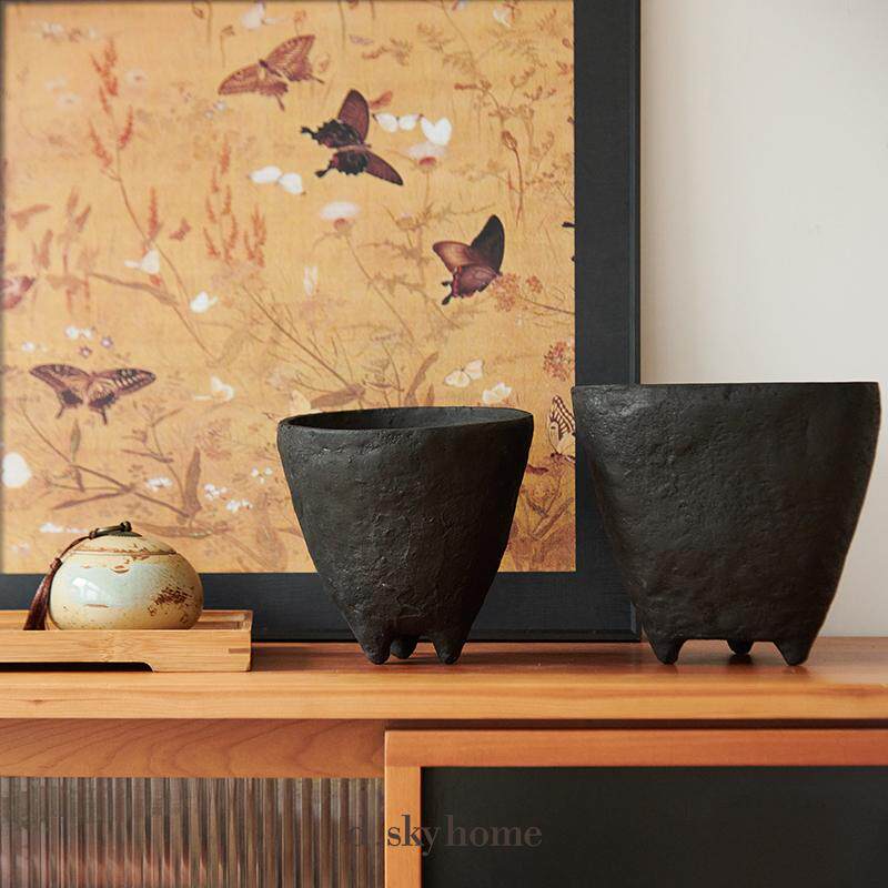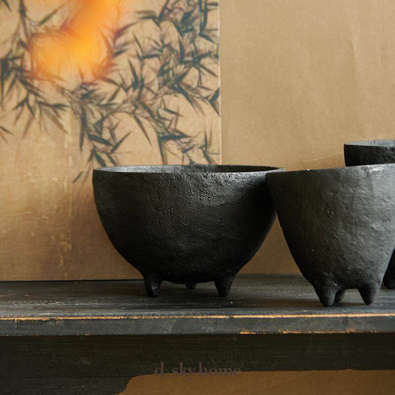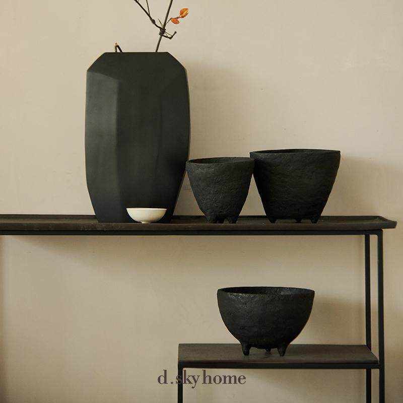 迪斯凯 菲律宾进口侘寂风复古做旧黑色手工纸质异形艺术装饰摆件