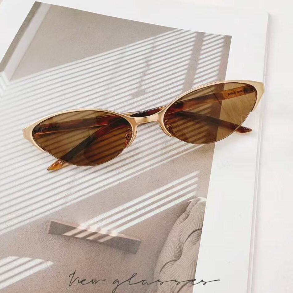 欧美时髦窄边猫眼黑色墨镜女复古老钱风高级感小框潮酷太阳眼镜男