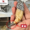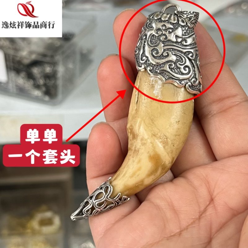 S925银复古包银镶嵌熊空套托熊虎牙吊坠牙尖套银饰民族风配件