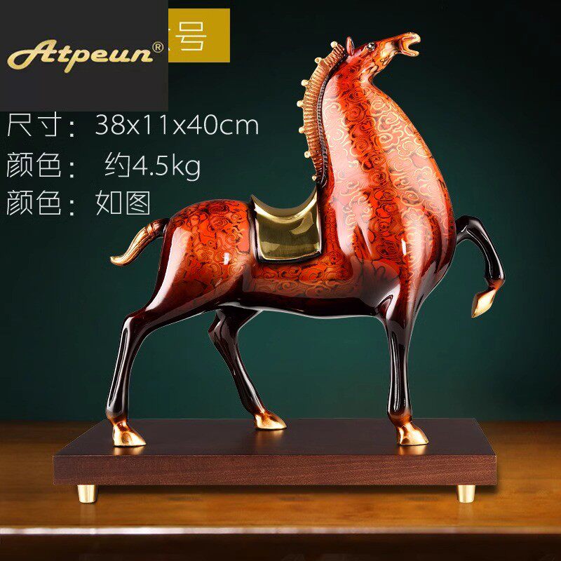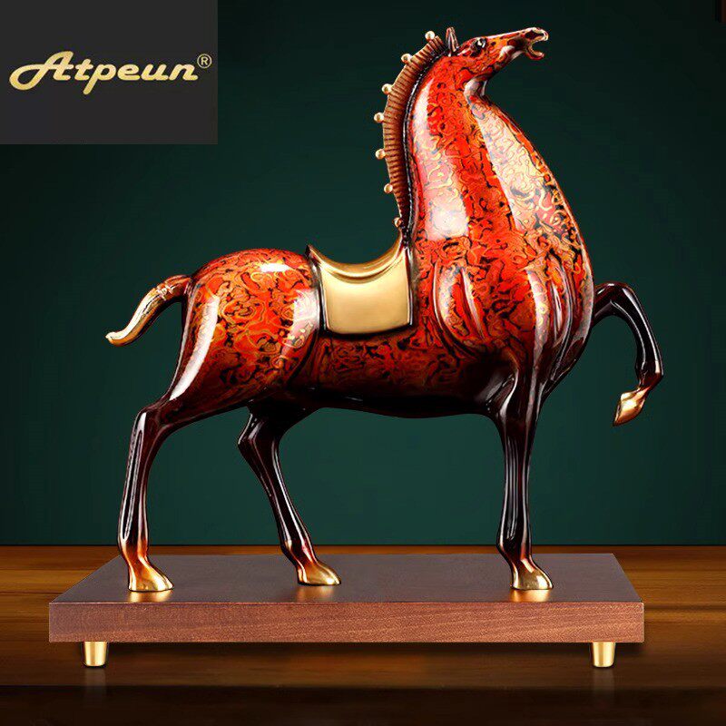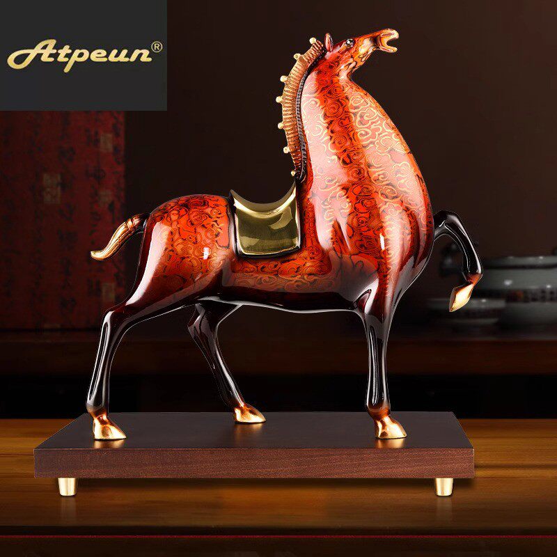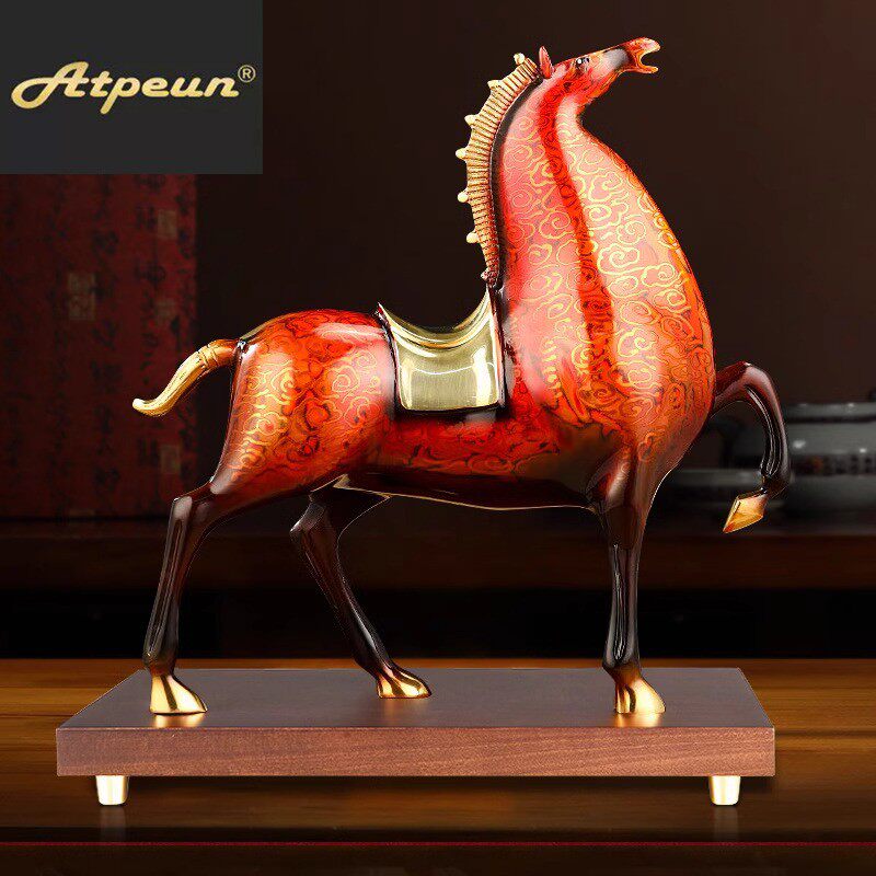 ATPEUN铜马摆件招财将军马大漆工艺品红色马客厅生肖