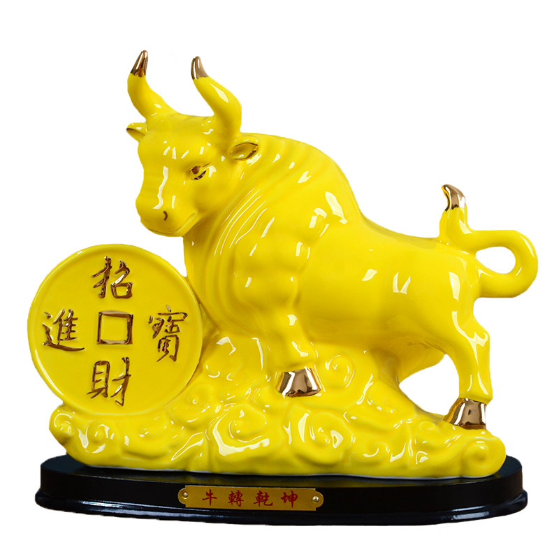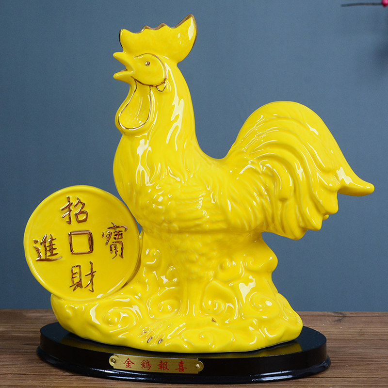 风水黄色公鸡摆件大号陶瓷描金鸡招财家居装饰高R档工艺品斩婚外