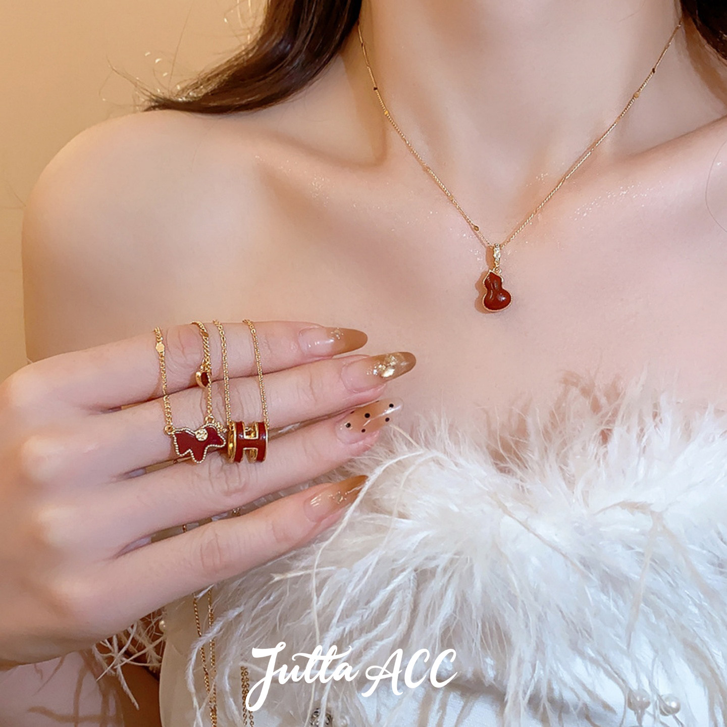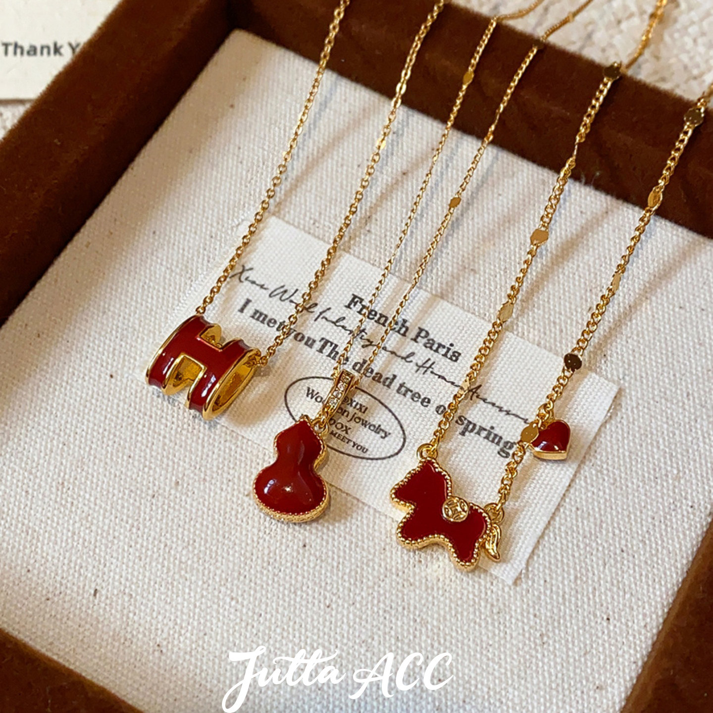 轻奢红色葫芦小马项链女本命年百搭锁骨链高级感吊坠字母爆款礼物