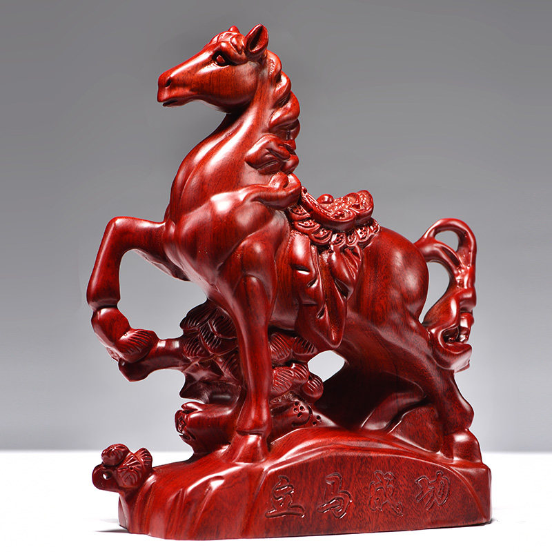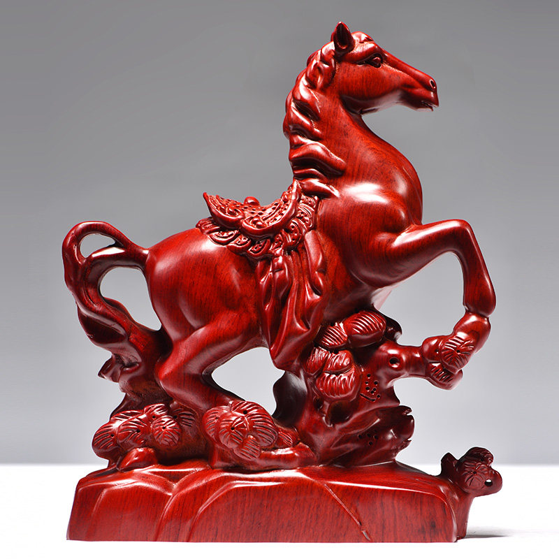 红木马摆件木头马工艺品红色木马摆件家居动物实木质雕刻装饰客厅