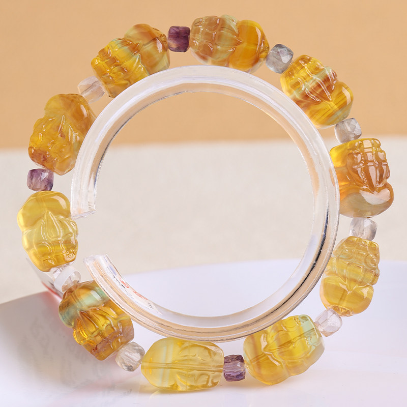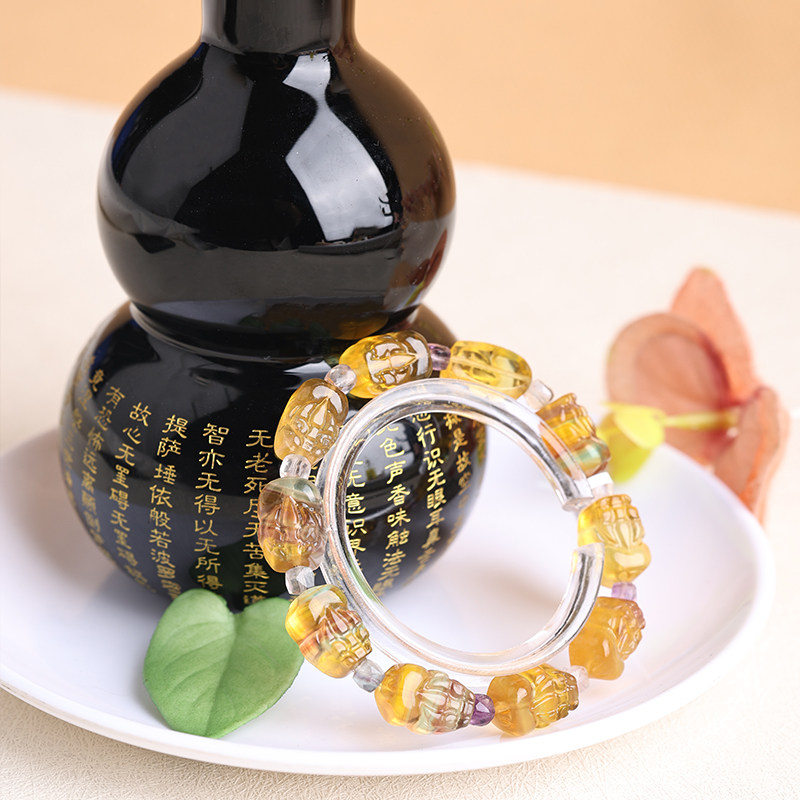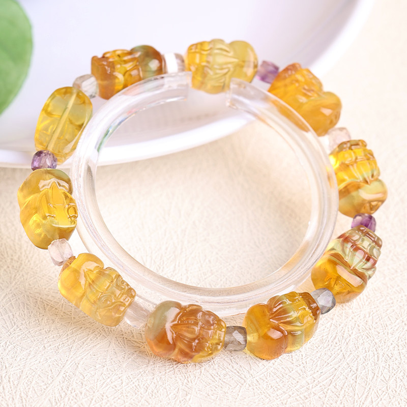 天然黄色萤石貔貅手链一物一图平安健康手串黄色水晶男女饰品礼物