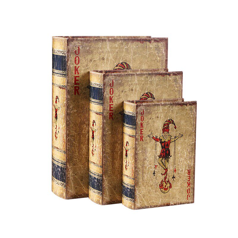 创意扑克牌做旧仿真书桌面收纳盒装饰书木质装饰假书拍摄道具书
