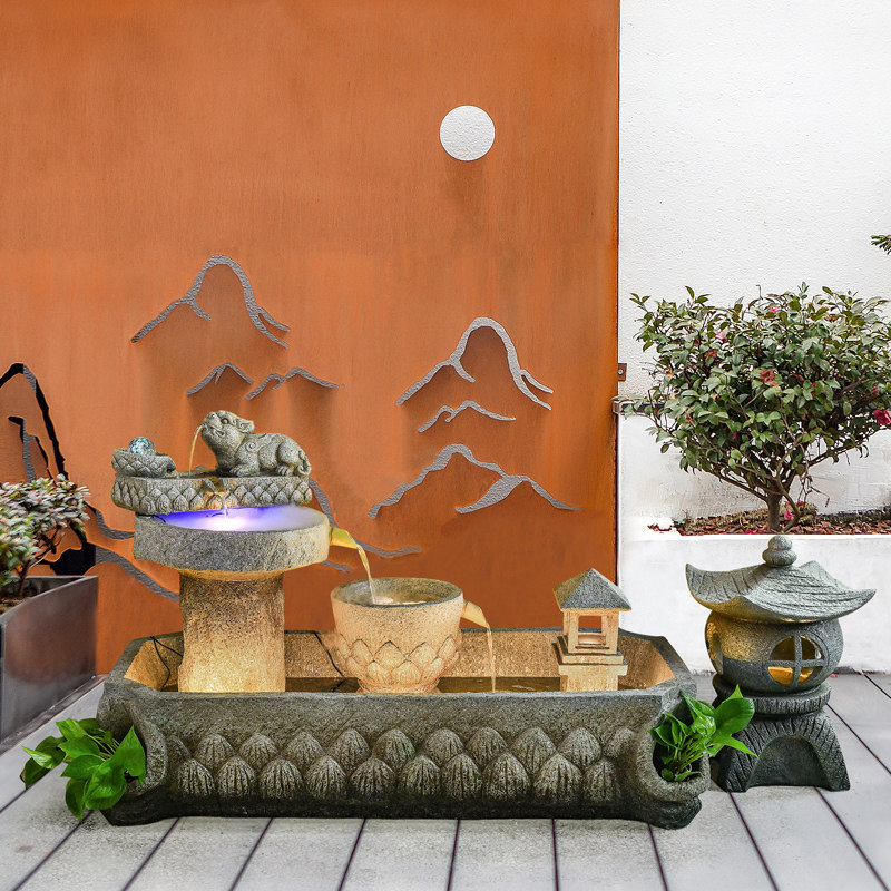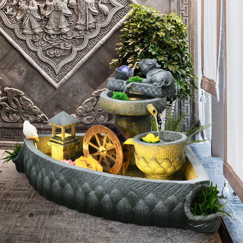 石墨假山流水喷泉室内玄关办公室店铺景观装饰循环水落地鱼池摆件