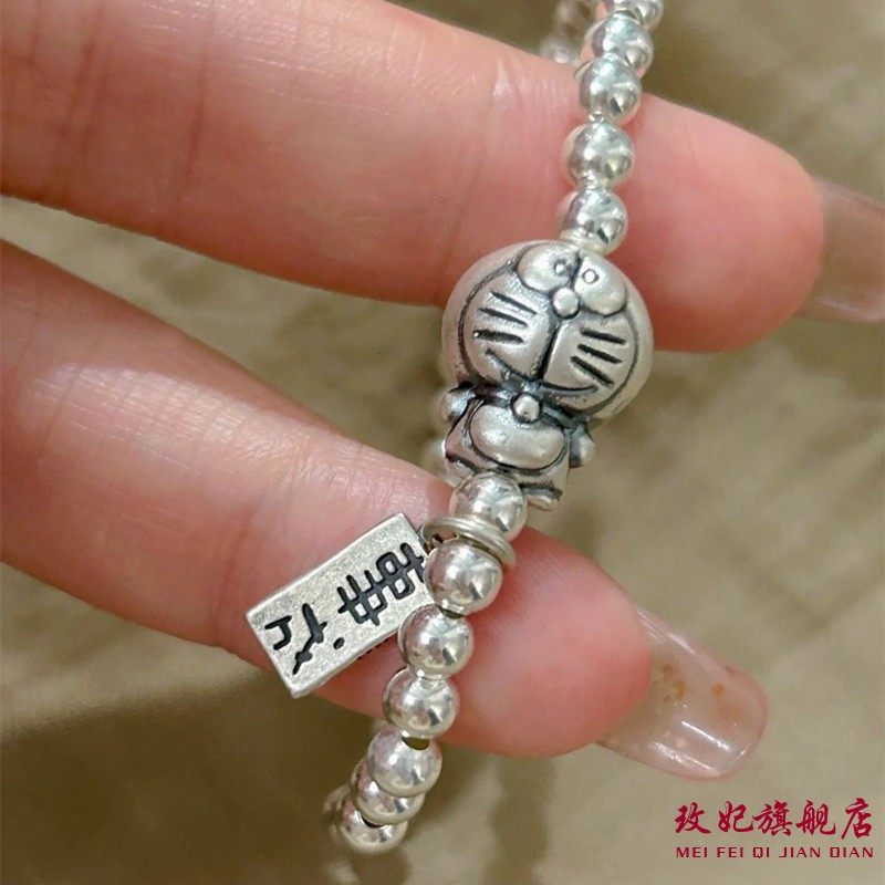香港正生足银999叮当猫心想事成纯银手链小众轻奢圆珠手串送女友