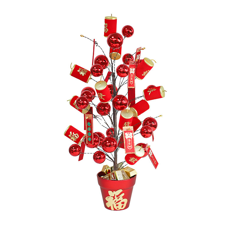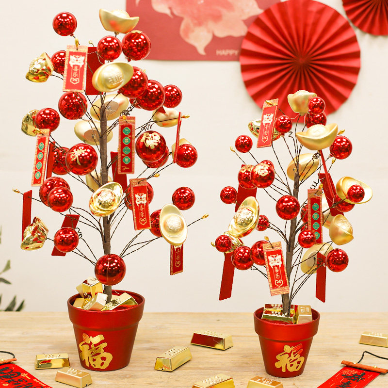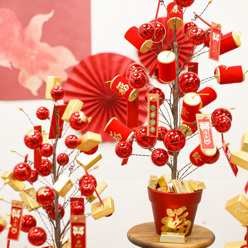 新年春节过年居家客厅桌面摆件喜庆婚礼装饰发财招财树金元宝鞭炮