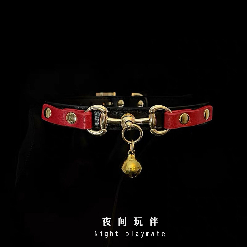 夜间玩伴 情调铃铛项圈颈圈男女choker项链真皮k9小狗puppy牵引绳