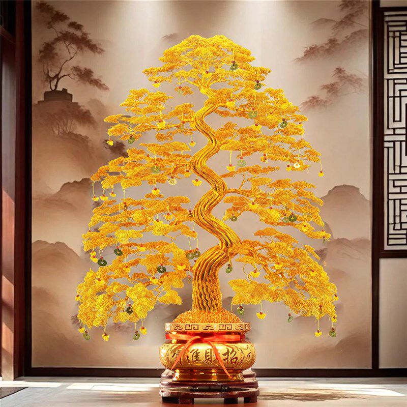 金色发财树摆件手工编织摇钱树家居客厅办公室装饰品乔迁开业送礼