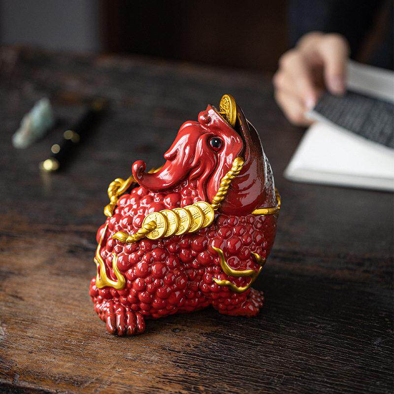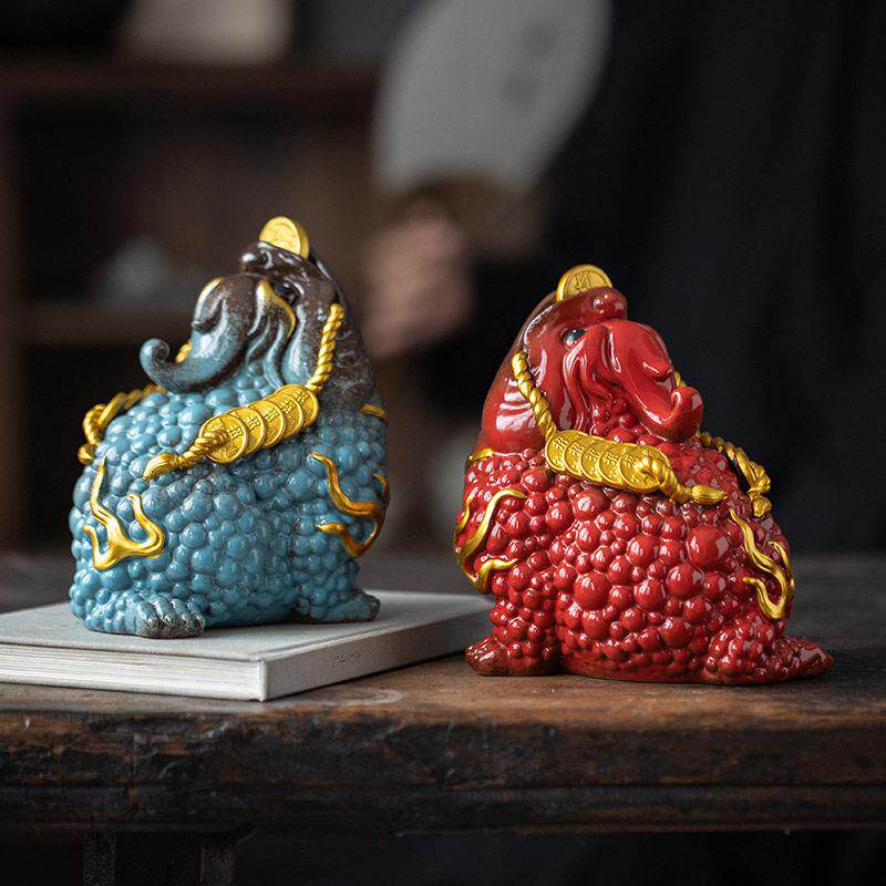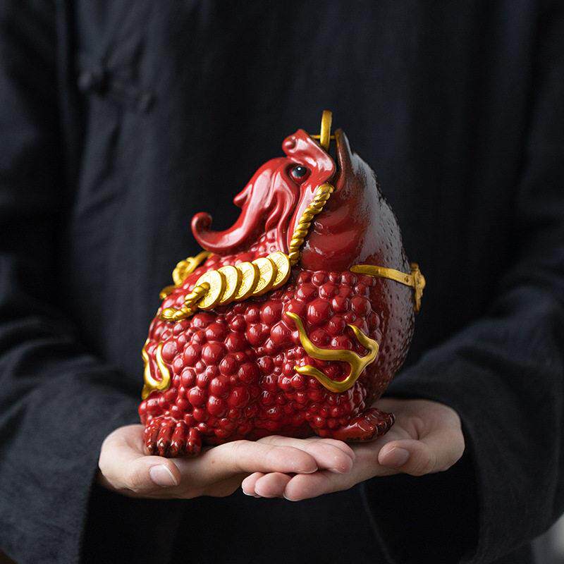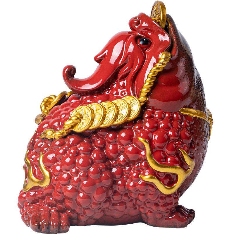 大号红色陶瓷金蟾摆件招财三足蟾蜍客厅办公室玄关工艺礼品摆饰开