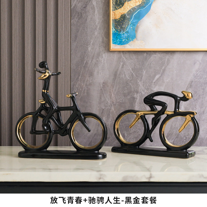 现代极简轻奢高级感样板房酒柜运动人员摆件黑金色艺术感花器摆设