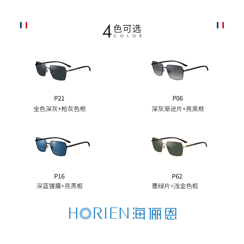 海俪恩男士深色墨绿色墨镜方形小框开车防紫外线偏光近视太阳眼镜