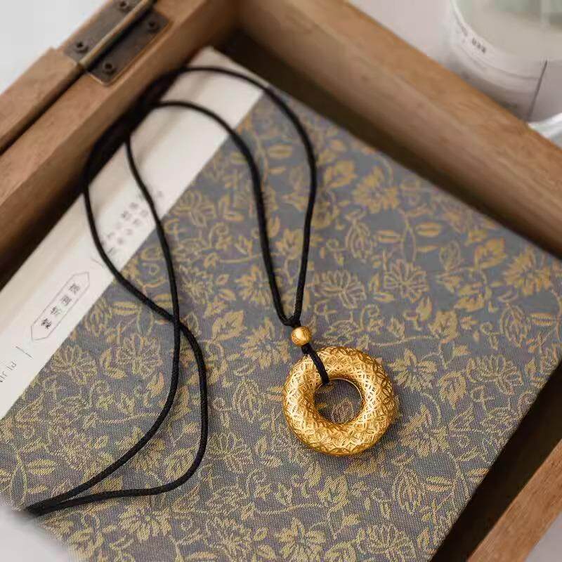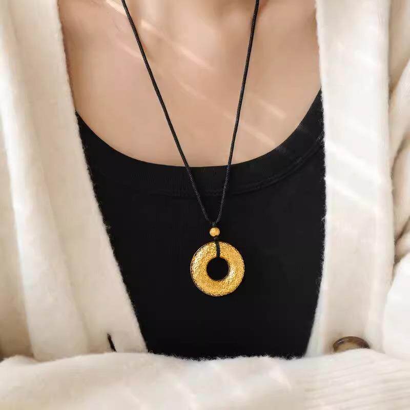 MaisonCleo「大气美感」古法沙金花丝钱币平安扣吊坠设计毛衣链女