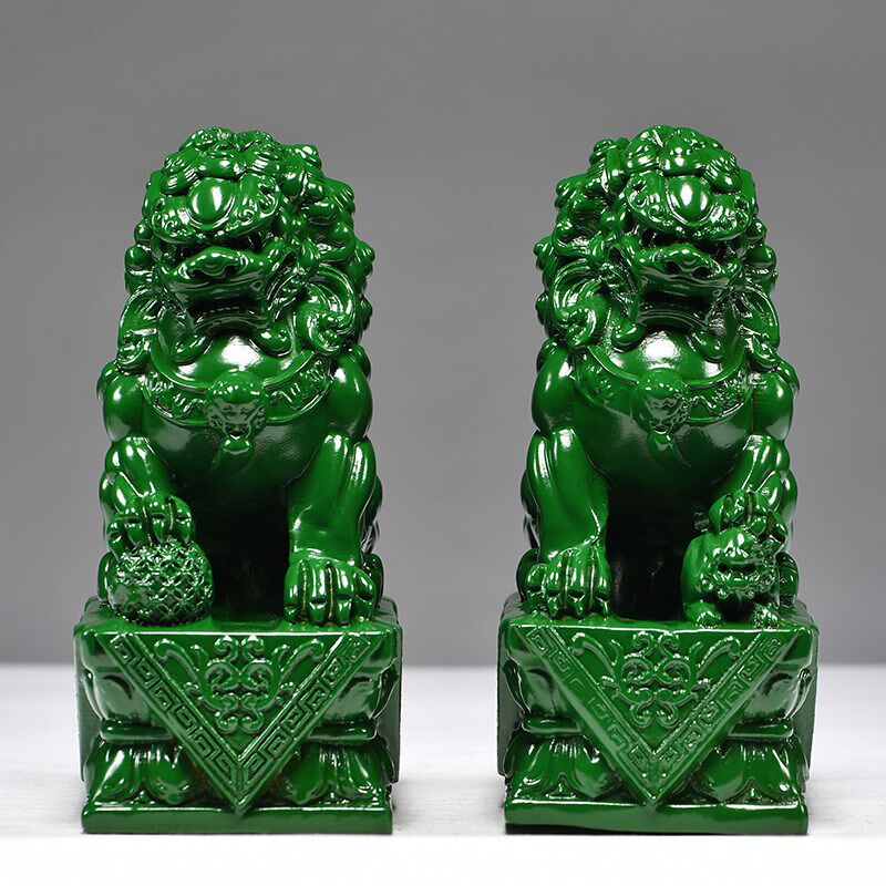 绿色实木雕刻狮子摆件一对北京狮家居大门装O饰木质开业送礼工艺