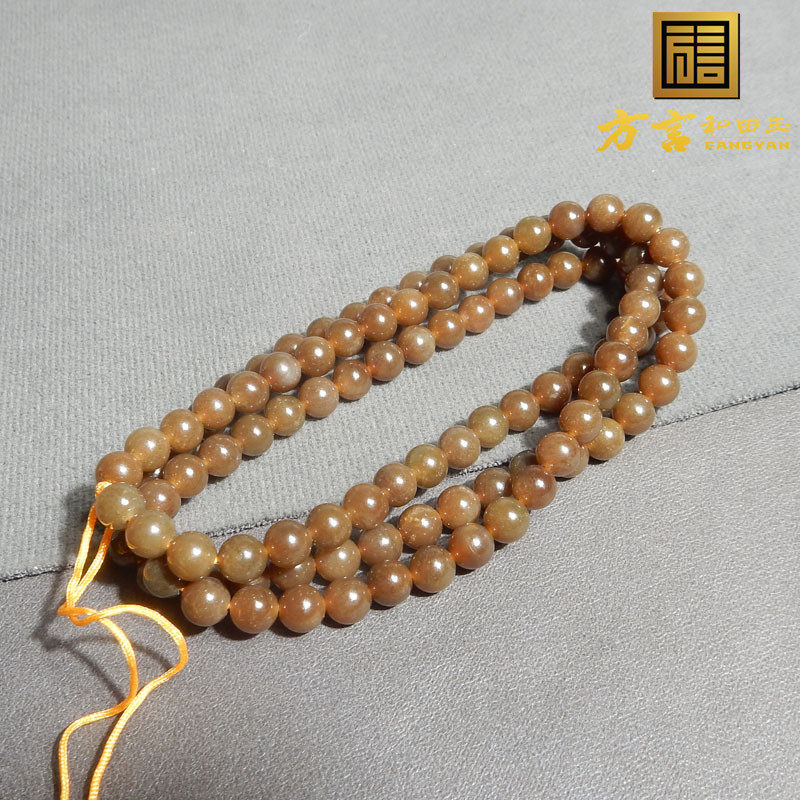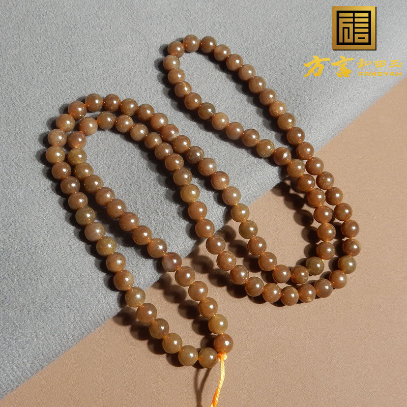 放漏260和田玉精品新疆且末料老熟油糯红糖卡6mm108颗精致项链R3
