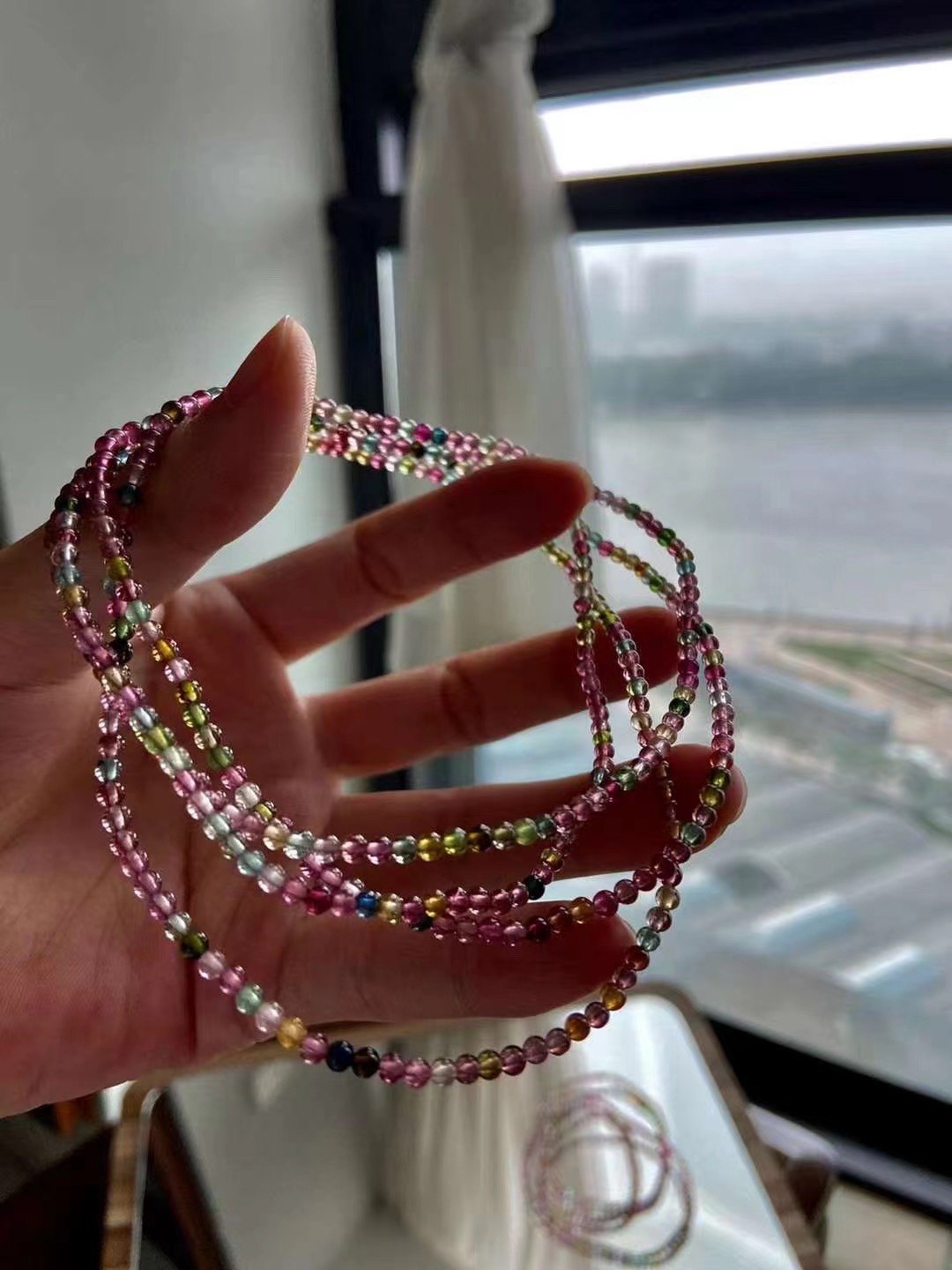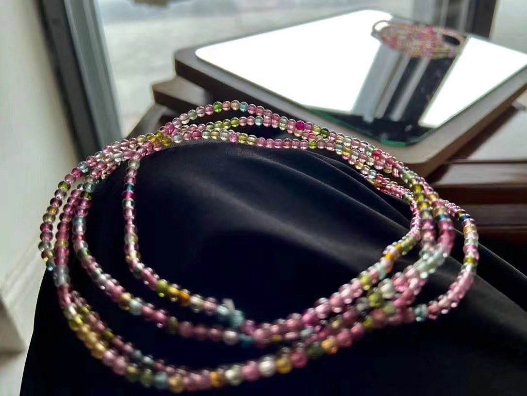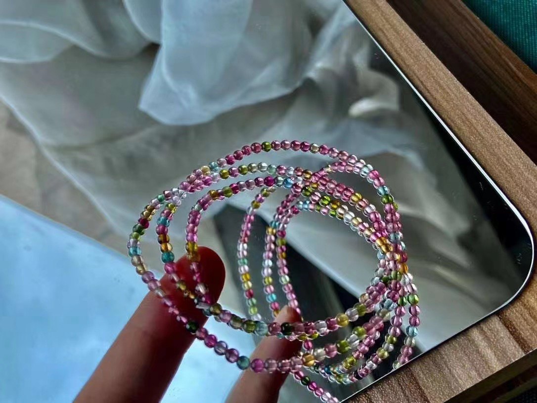 3mm极细天然玻璃体彩虹碧玺手串手链弹力绳叠戴质感礼物女