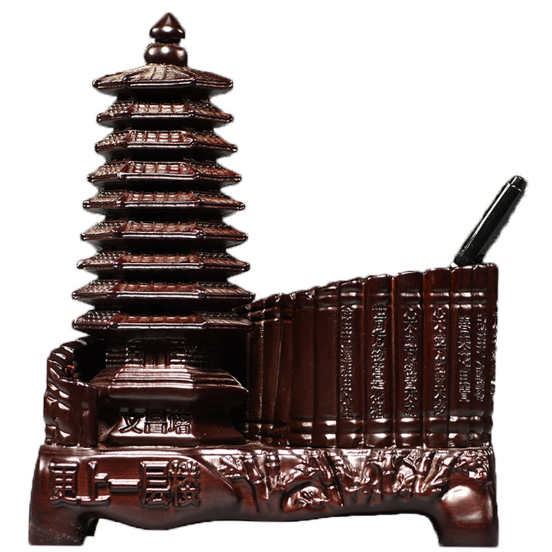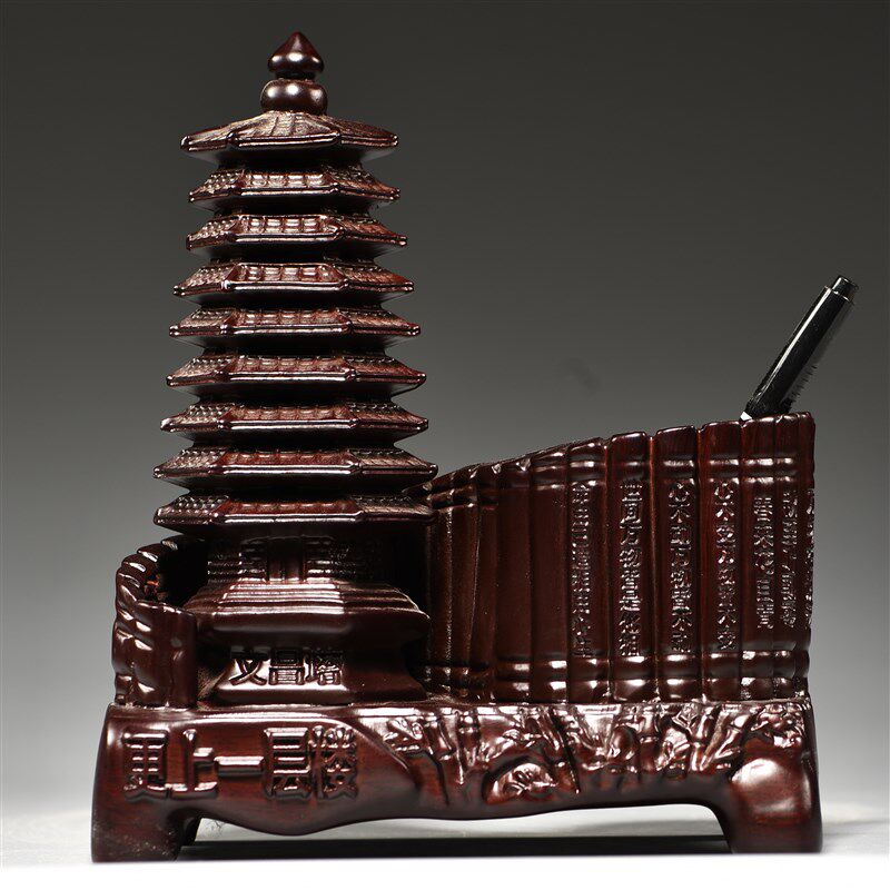 黑檀木雕实木九层文昌塔笔筒送老师学生领K导送礼品办公室客厅摆