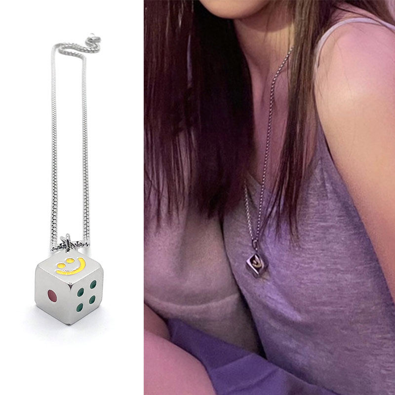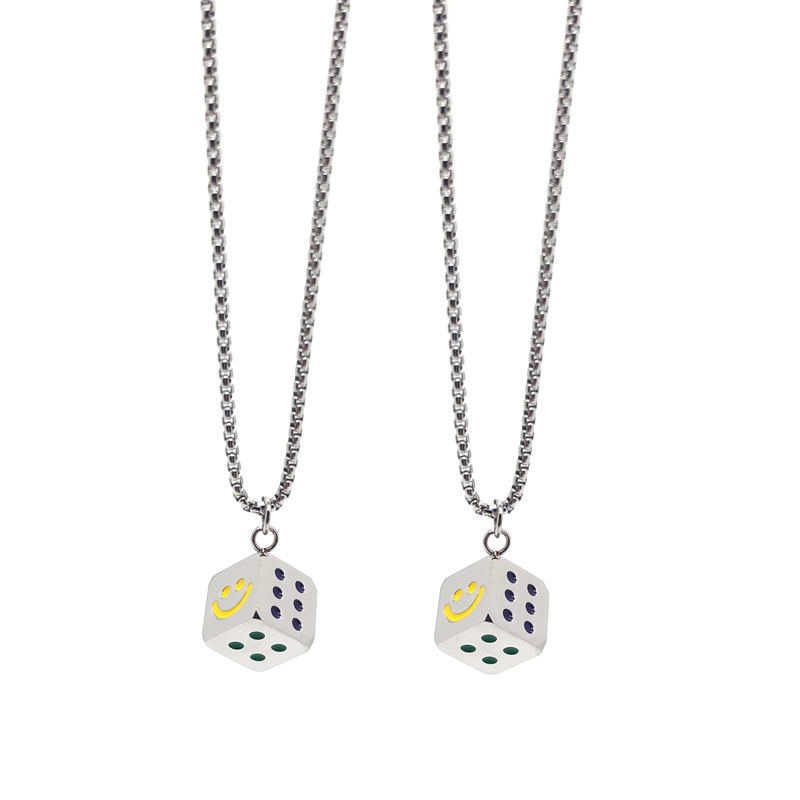 潮流合伙人幸运笑脸骰子项链男女街头嘻哈时尚百搭情侣国潮毛衣链