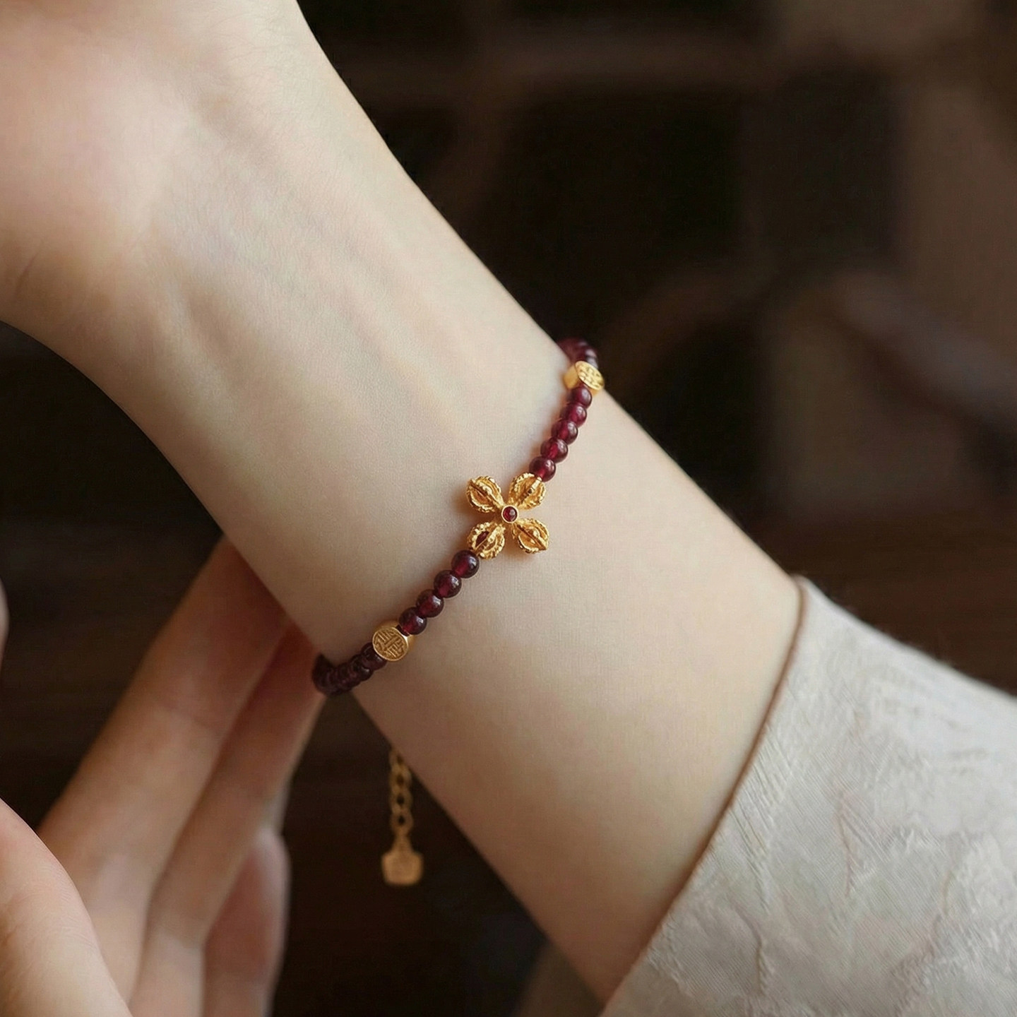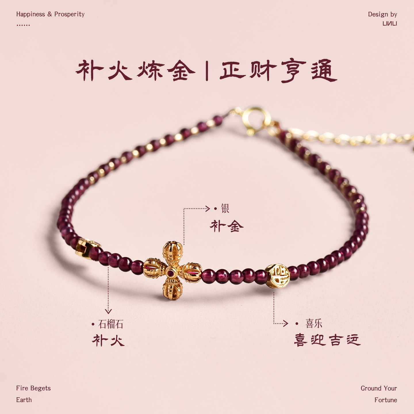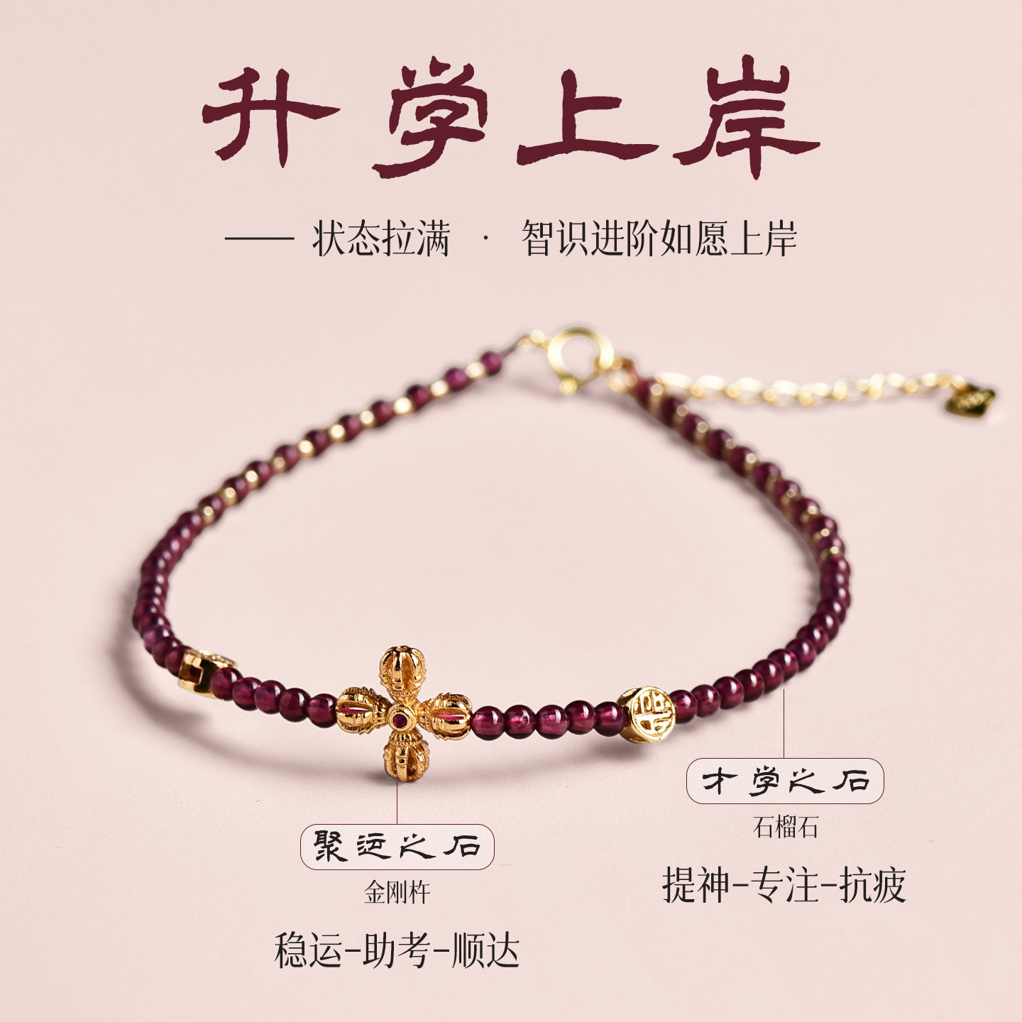 石榴石水晶手串本命年马年红色手链金刚杵招财转运叠戴女款补火