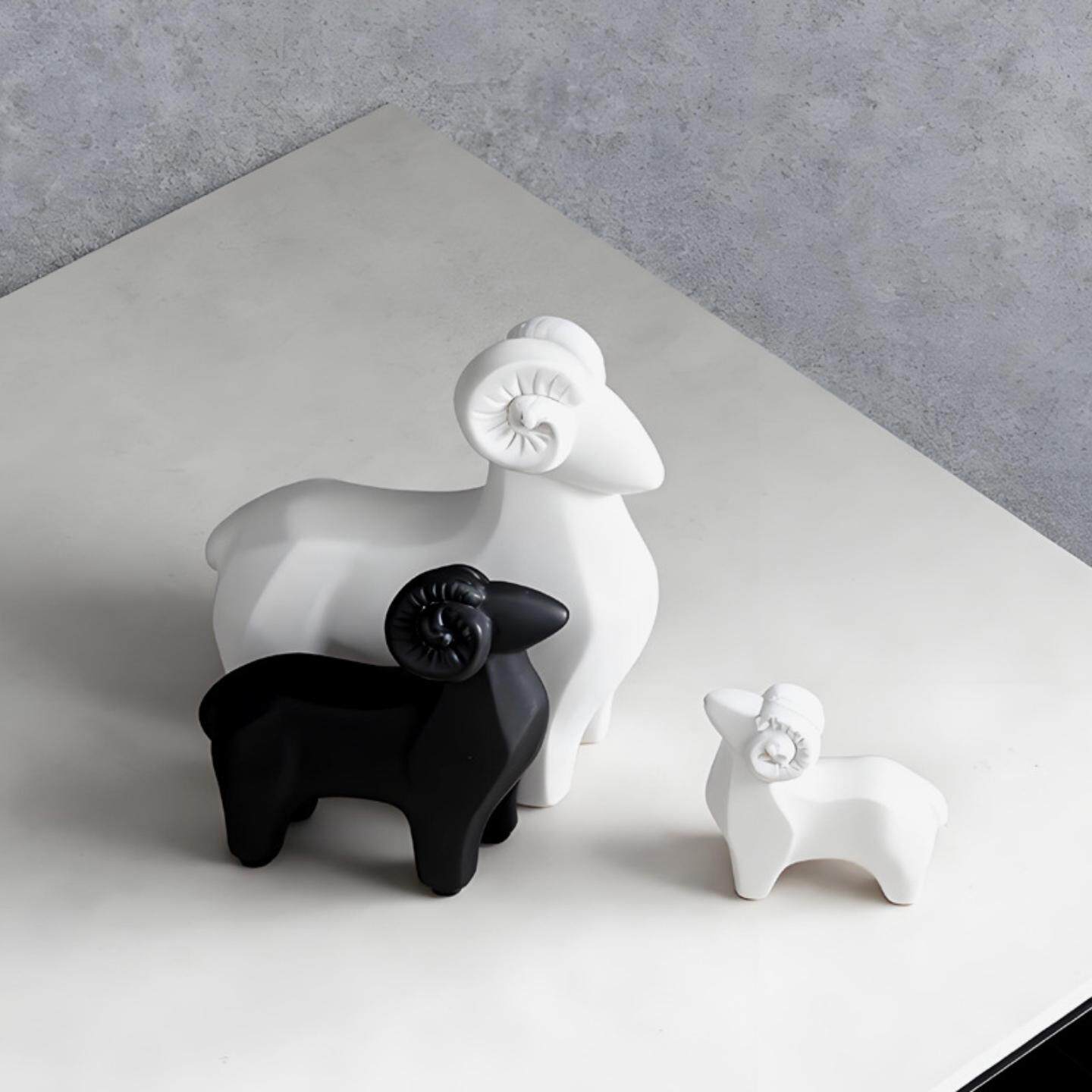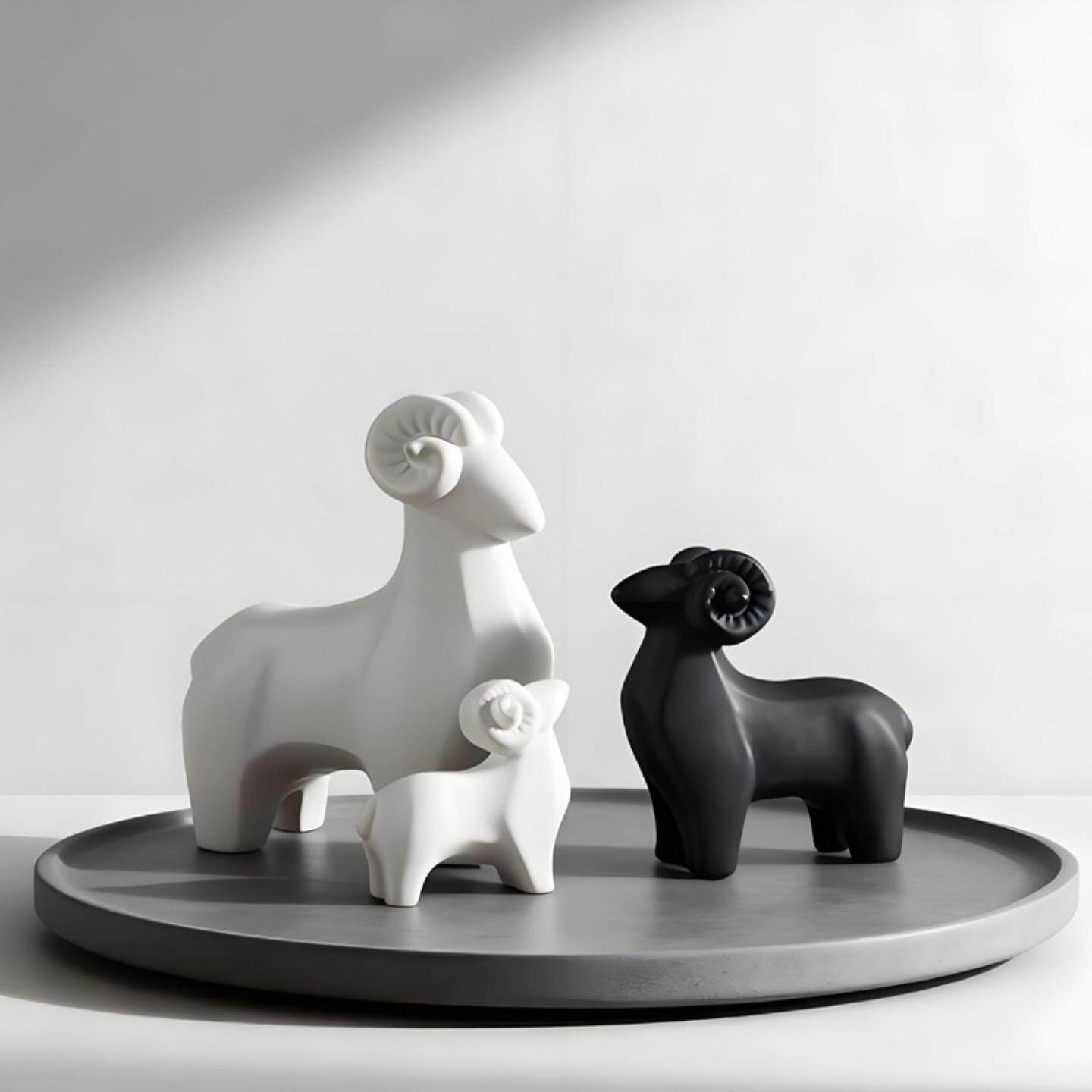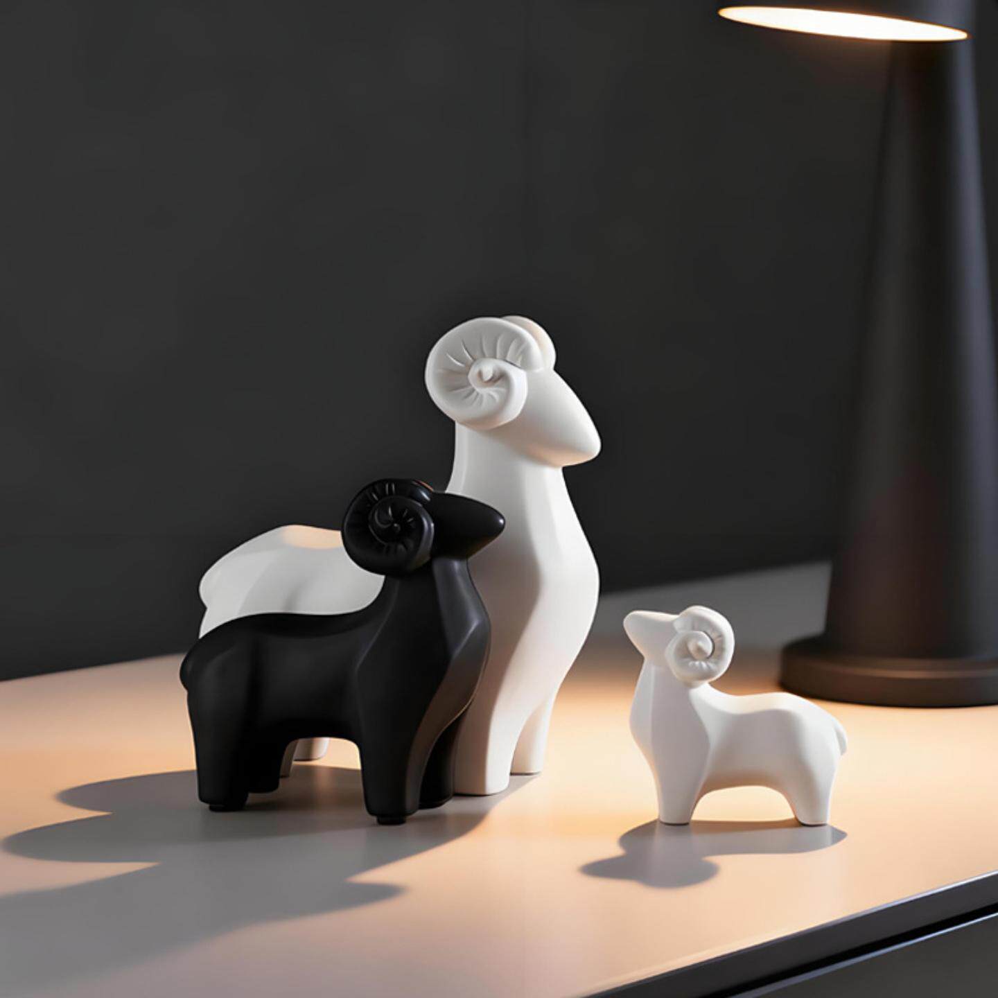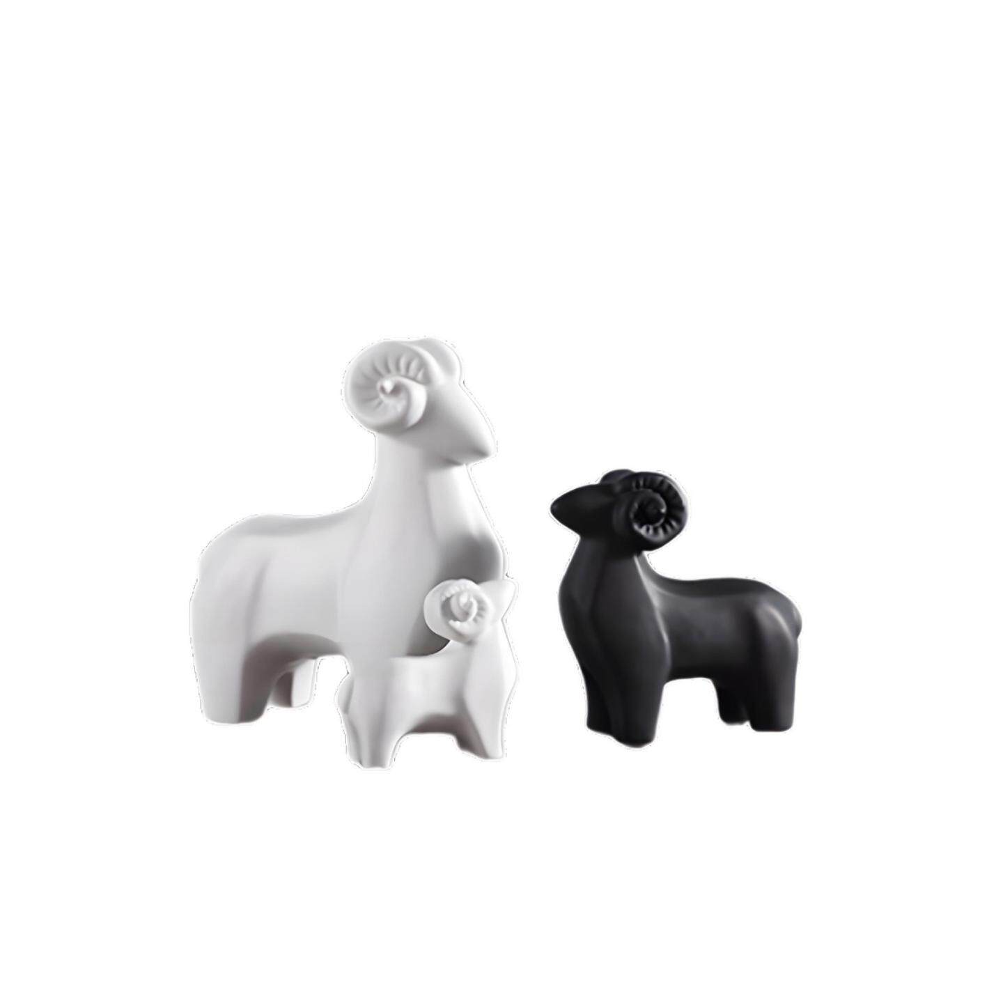 简约黑白色陶瓷羊摆件三羊开泰动物装饰品创意工艺品软装摆设