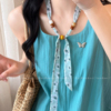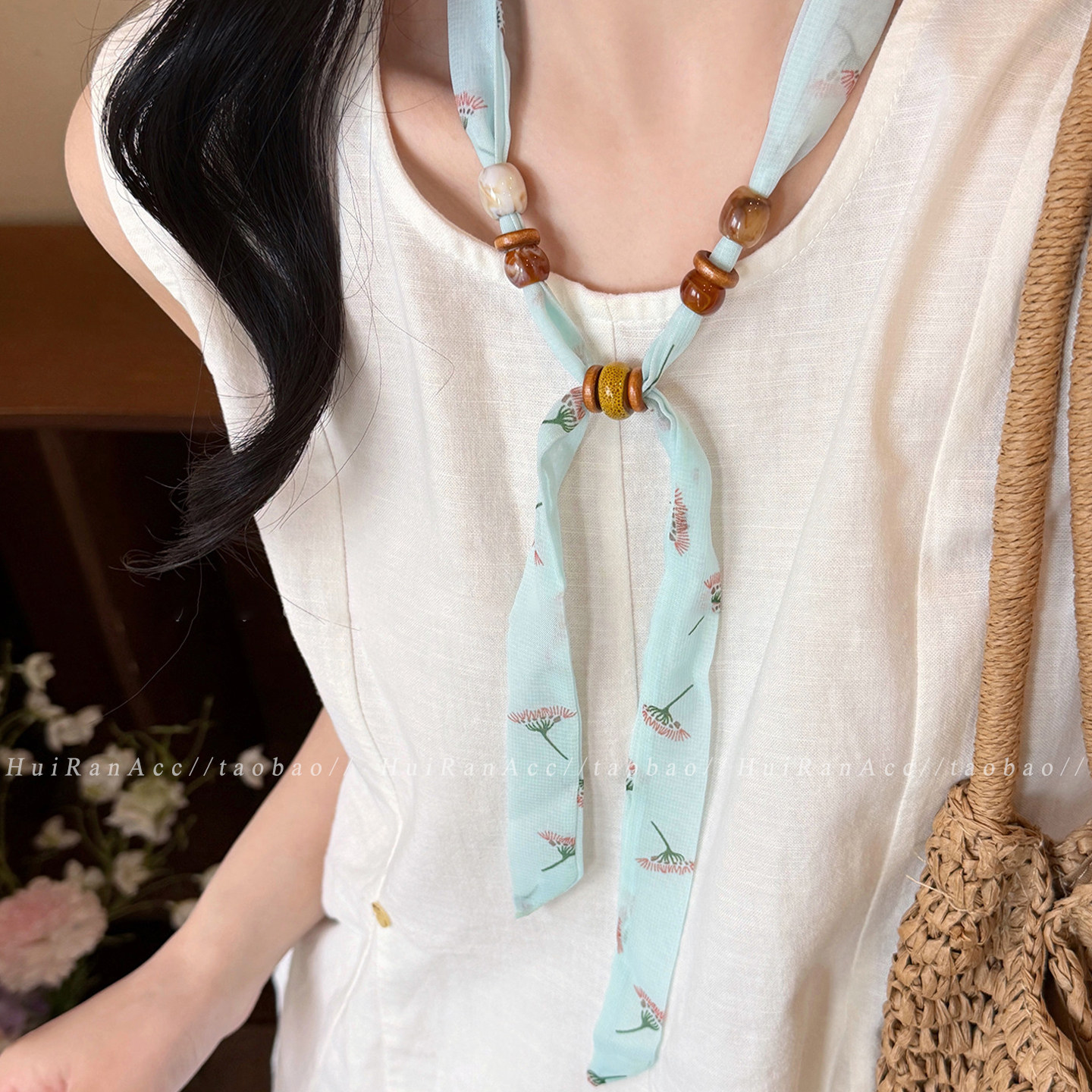 高级感复古蓝色格纹串珠项链女2026年新款氛围感春夏系脖装饰配饰