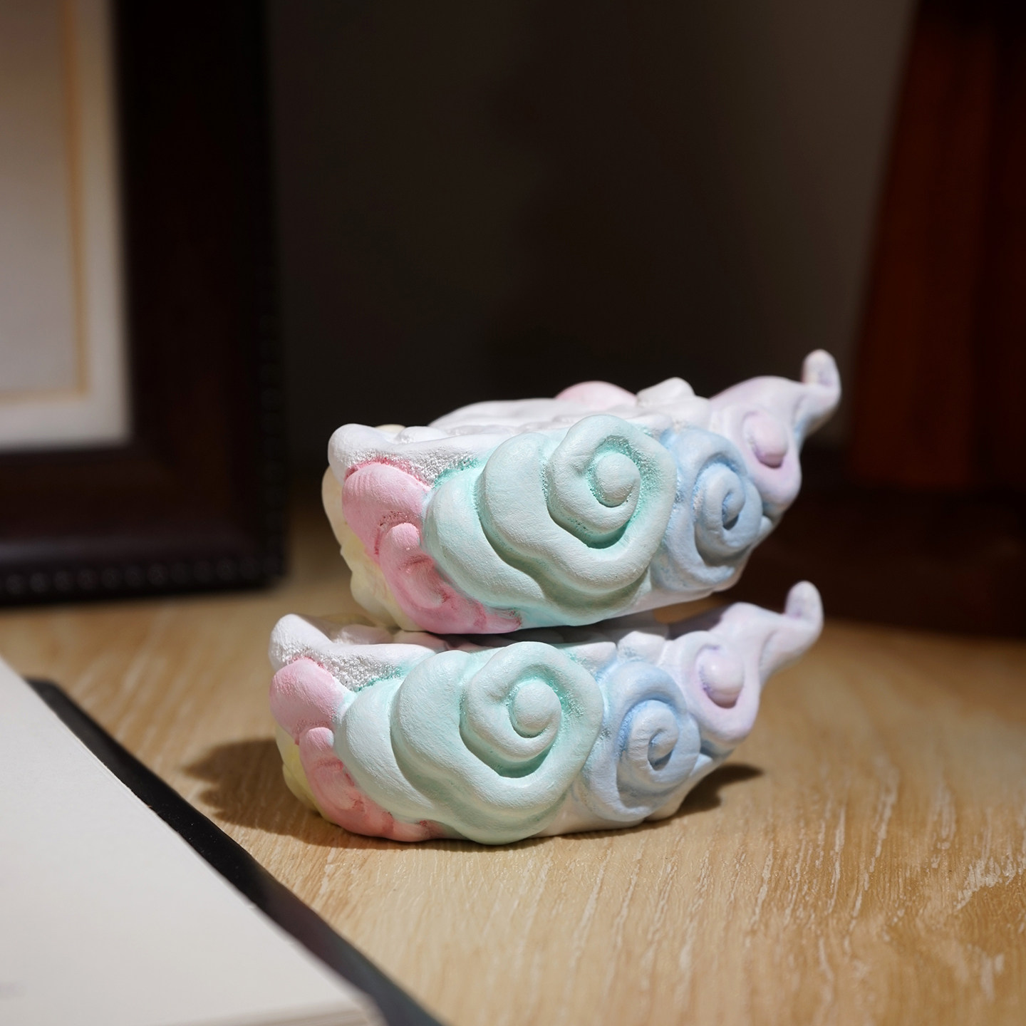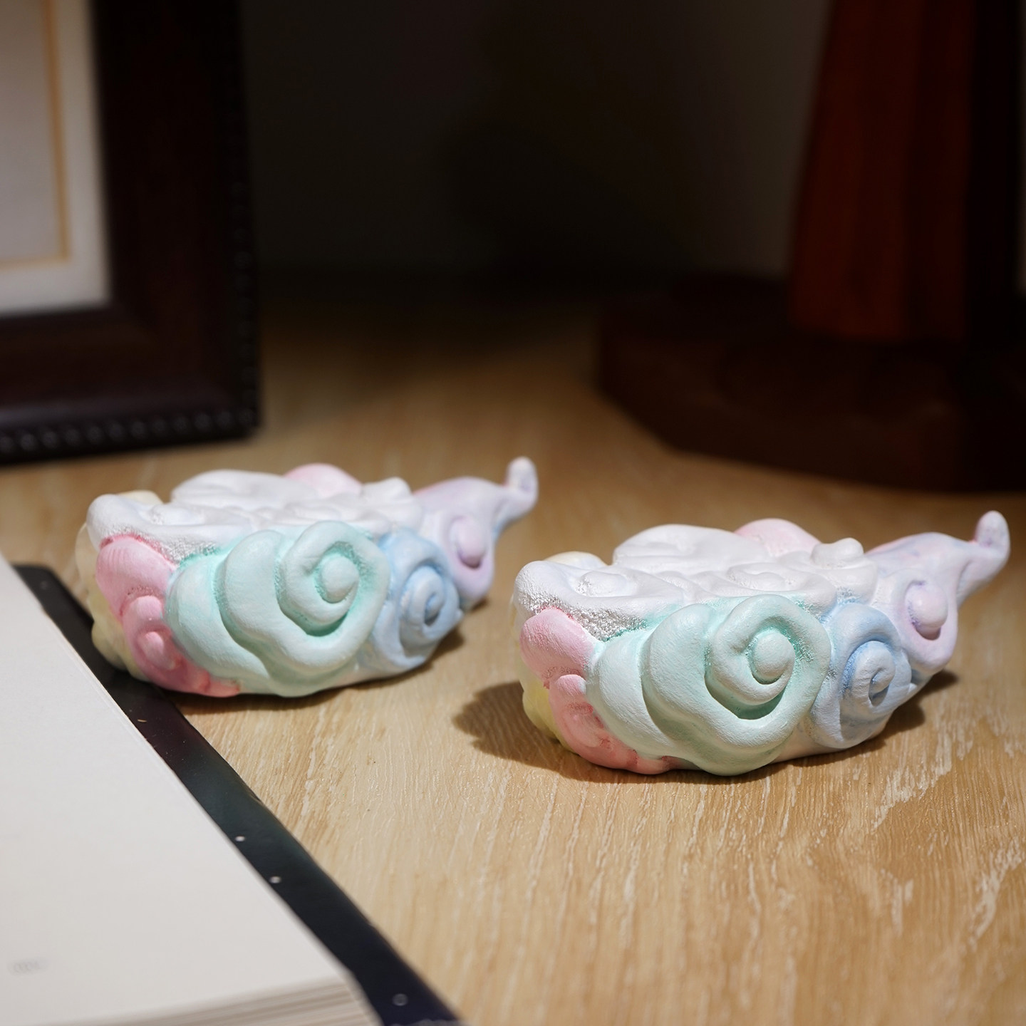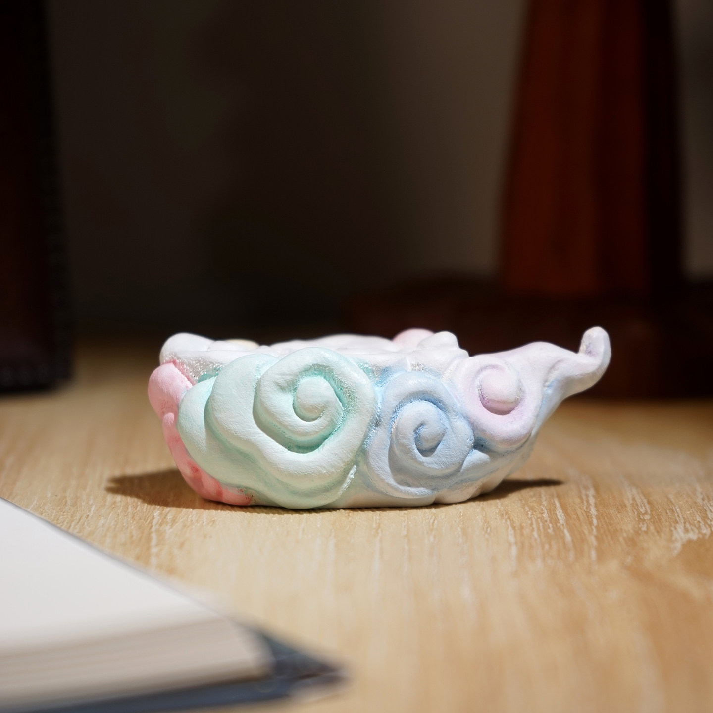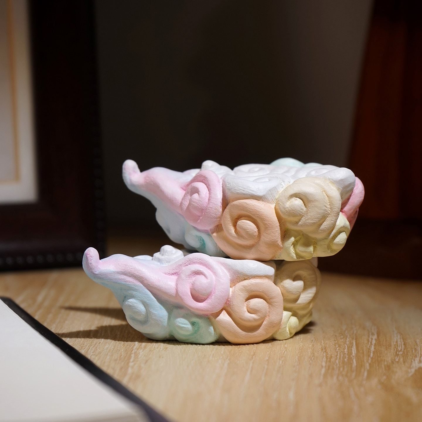 “七彩祥云”木雕底座桌面装饰品实木小摆件创意场景搭配布置装扮
