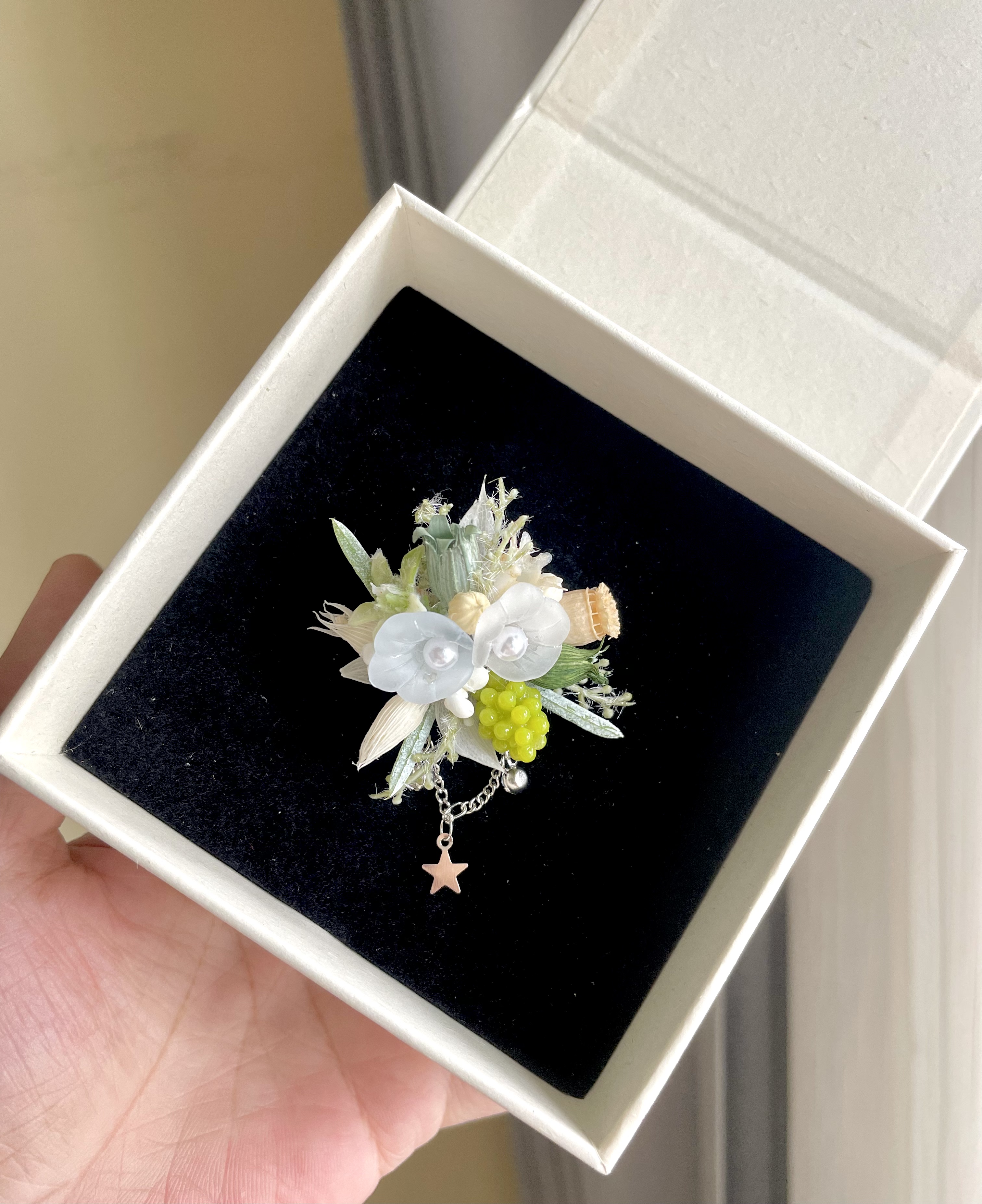Wedding 永生花仿真花戒指花白绿色系户外婚礼婚戒森系紫色系对戒