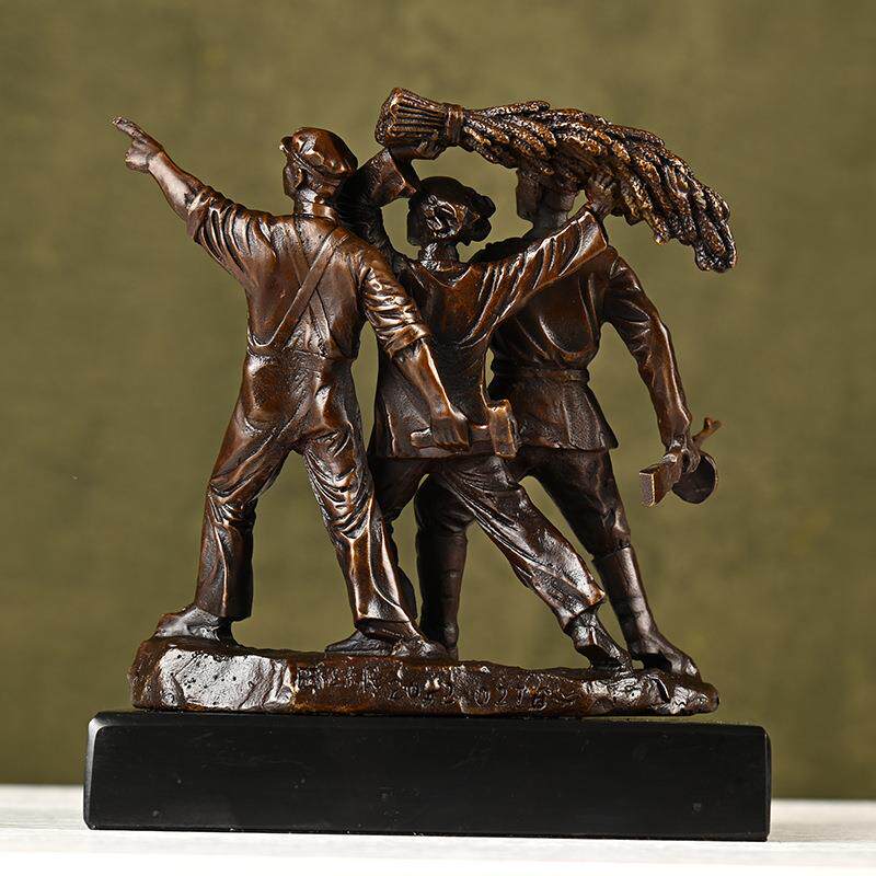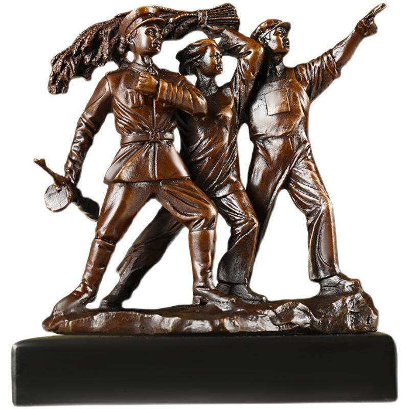 纯铜工农兵摆件 黄铜红色时代红军战士 家居办公室玄关桌面装饰品