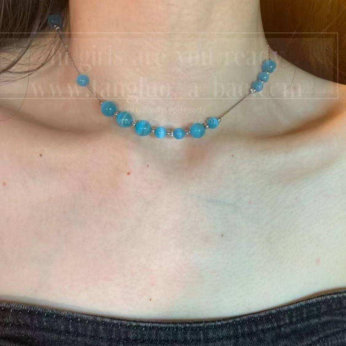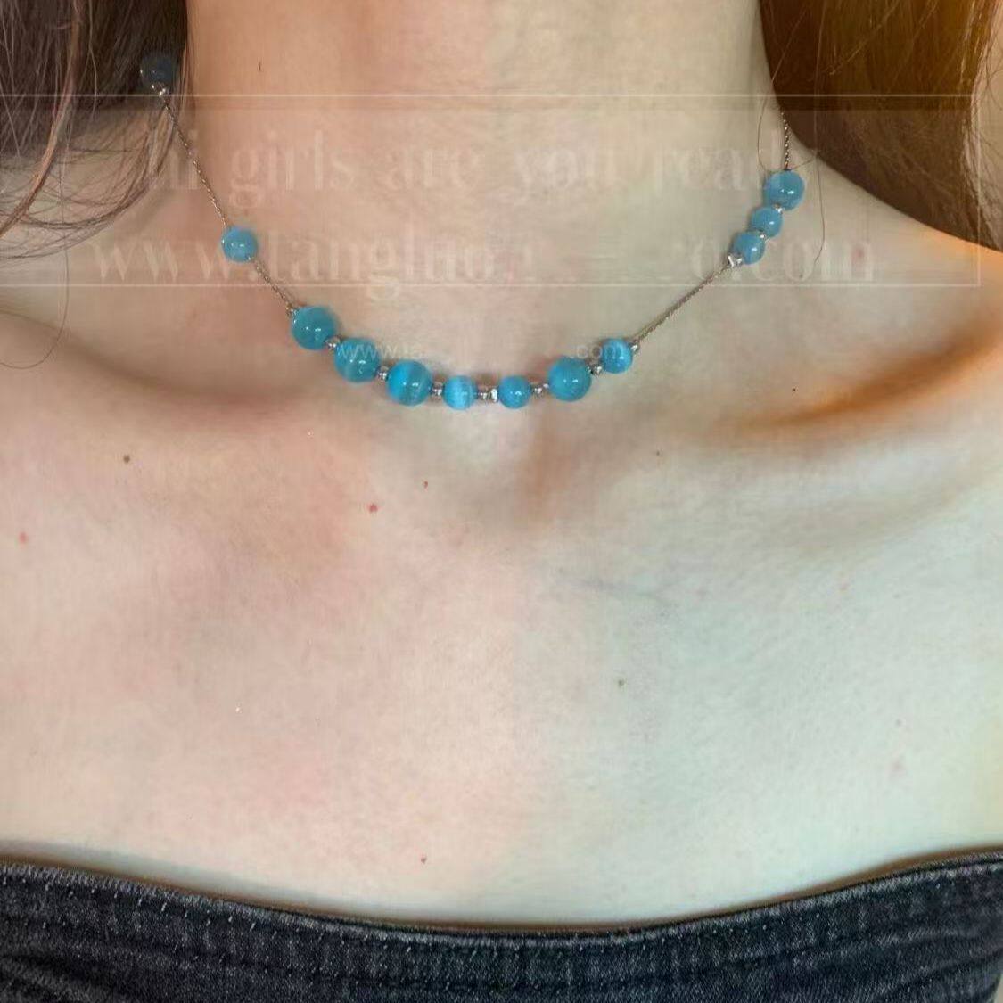 显白的蓝色颈链choker女小众高级感日常锁骨链百搭2025新款