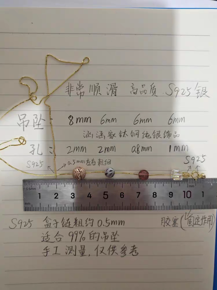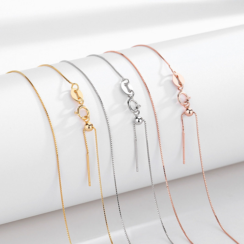 0.5mm盒子链可调节万能项链纯银网红DIY自由穿搭小孔穿珠厂家