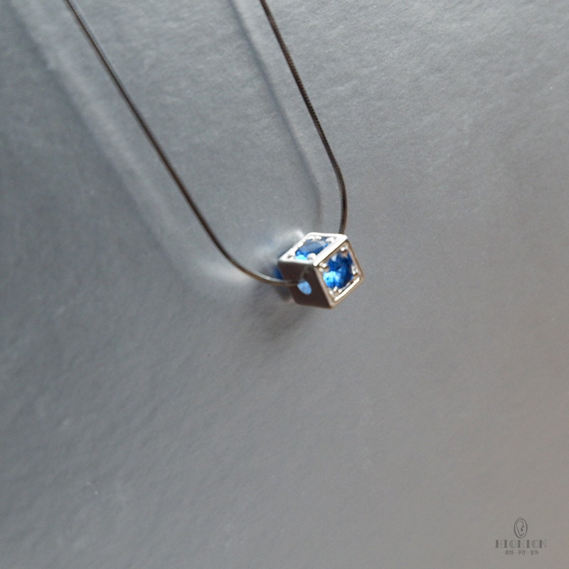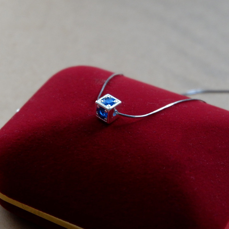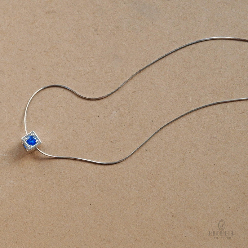 《First Love》原创小众蓝色锆石纯银项链蛇骨链叠带无性别冷淡风