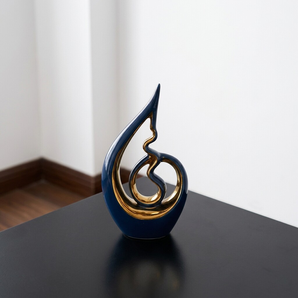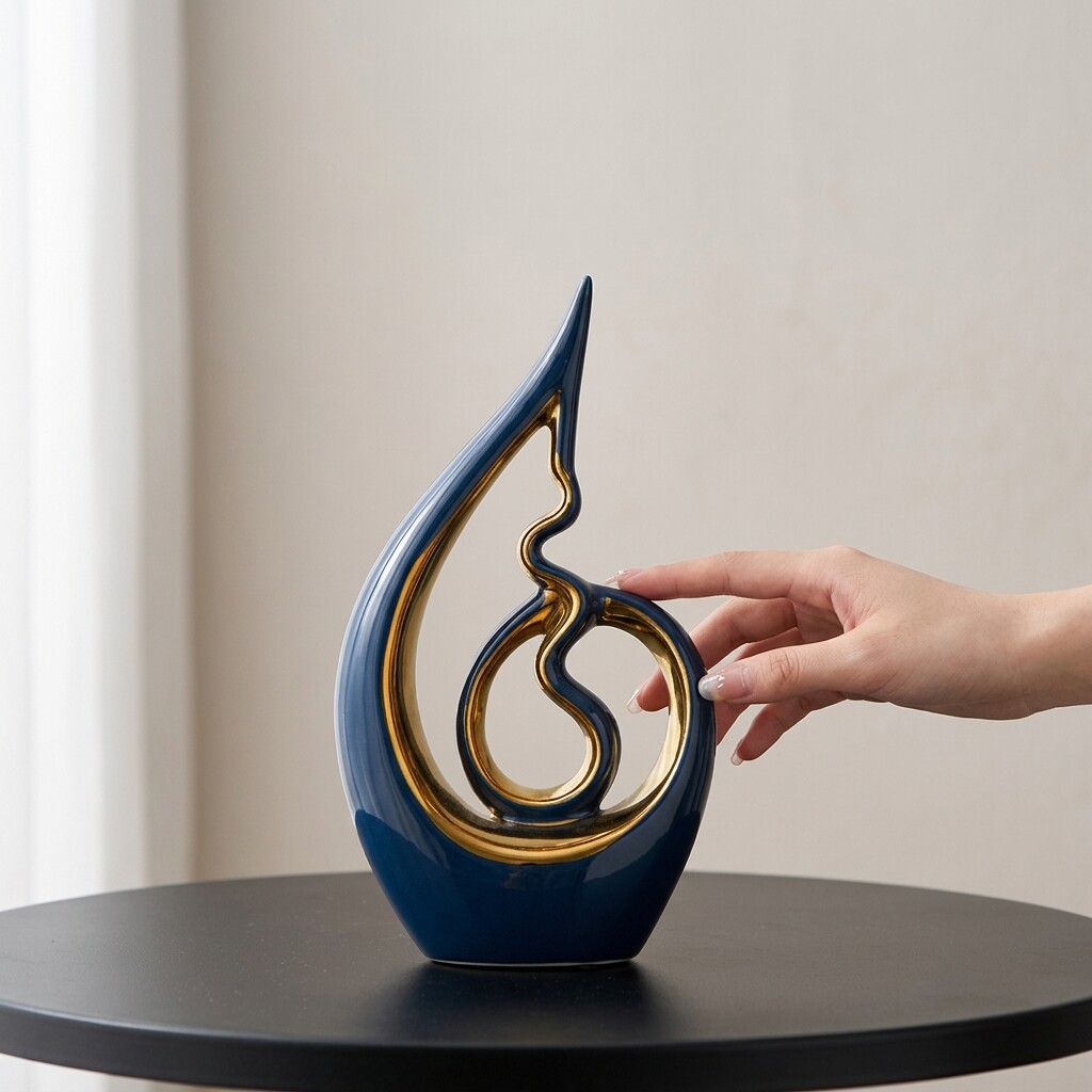 小众设计异型陶瓷装饰摆件蓝色抽象艺术家居客厅书房工艺品